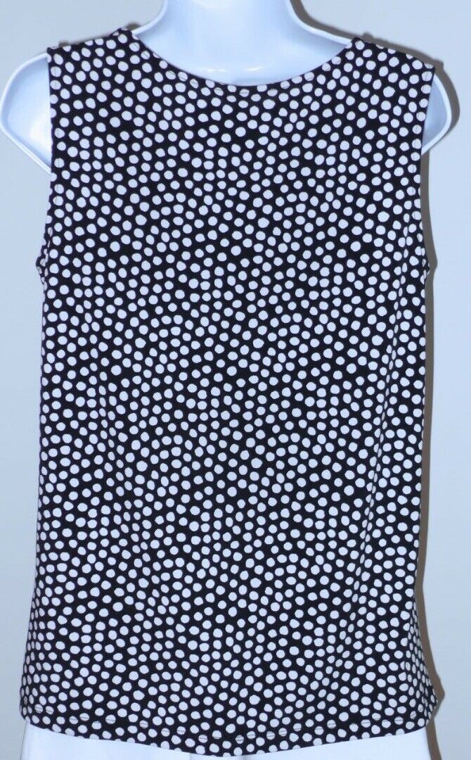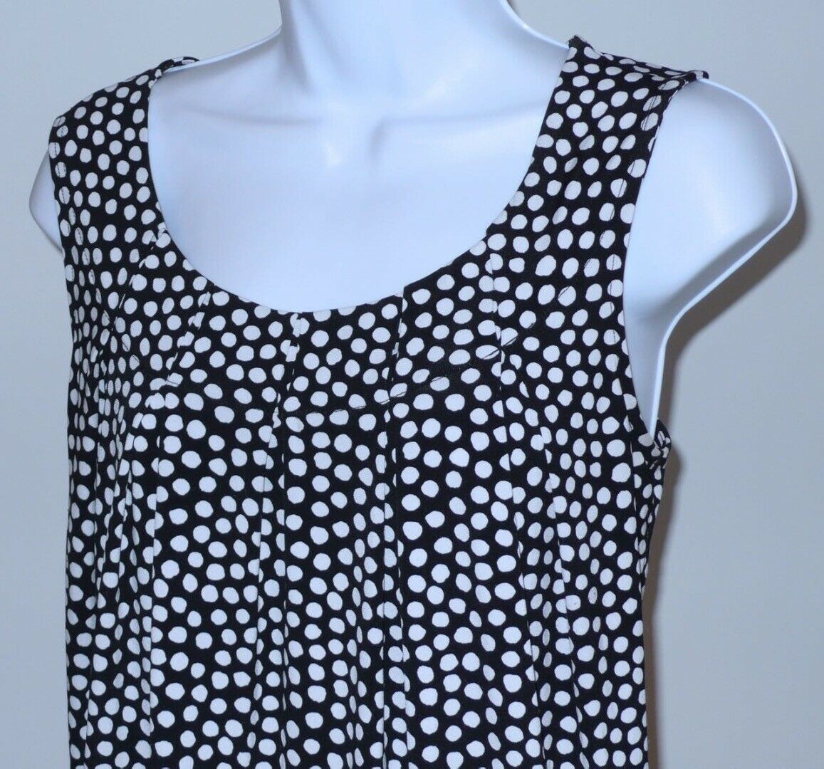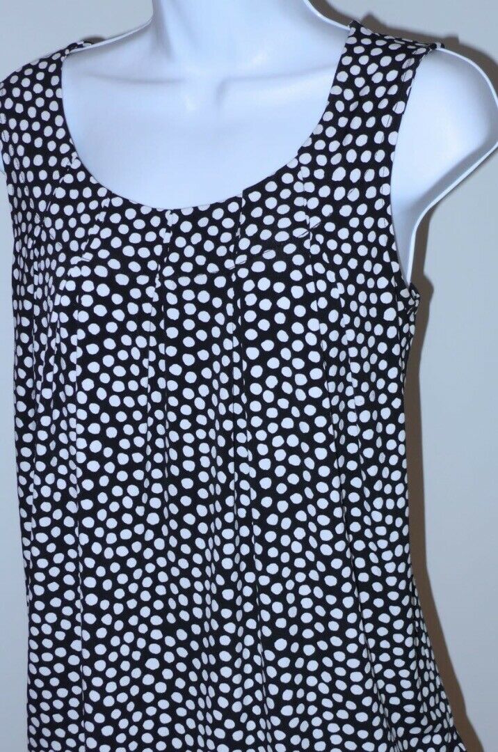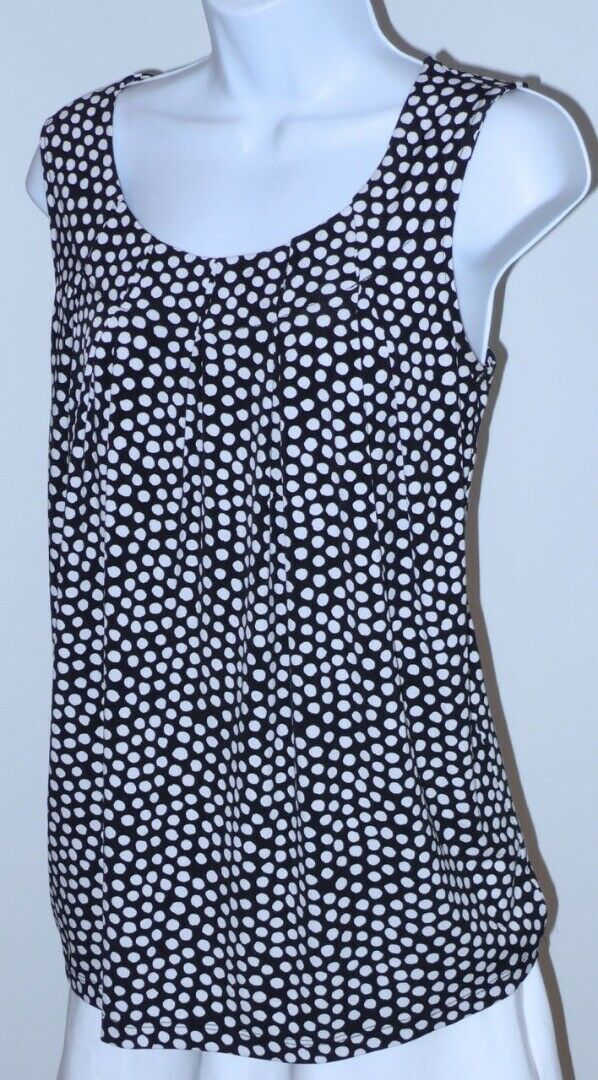MERONA Women's Black White Polka Dot Sleeveless Pleat Front Knit Blouse Sz M