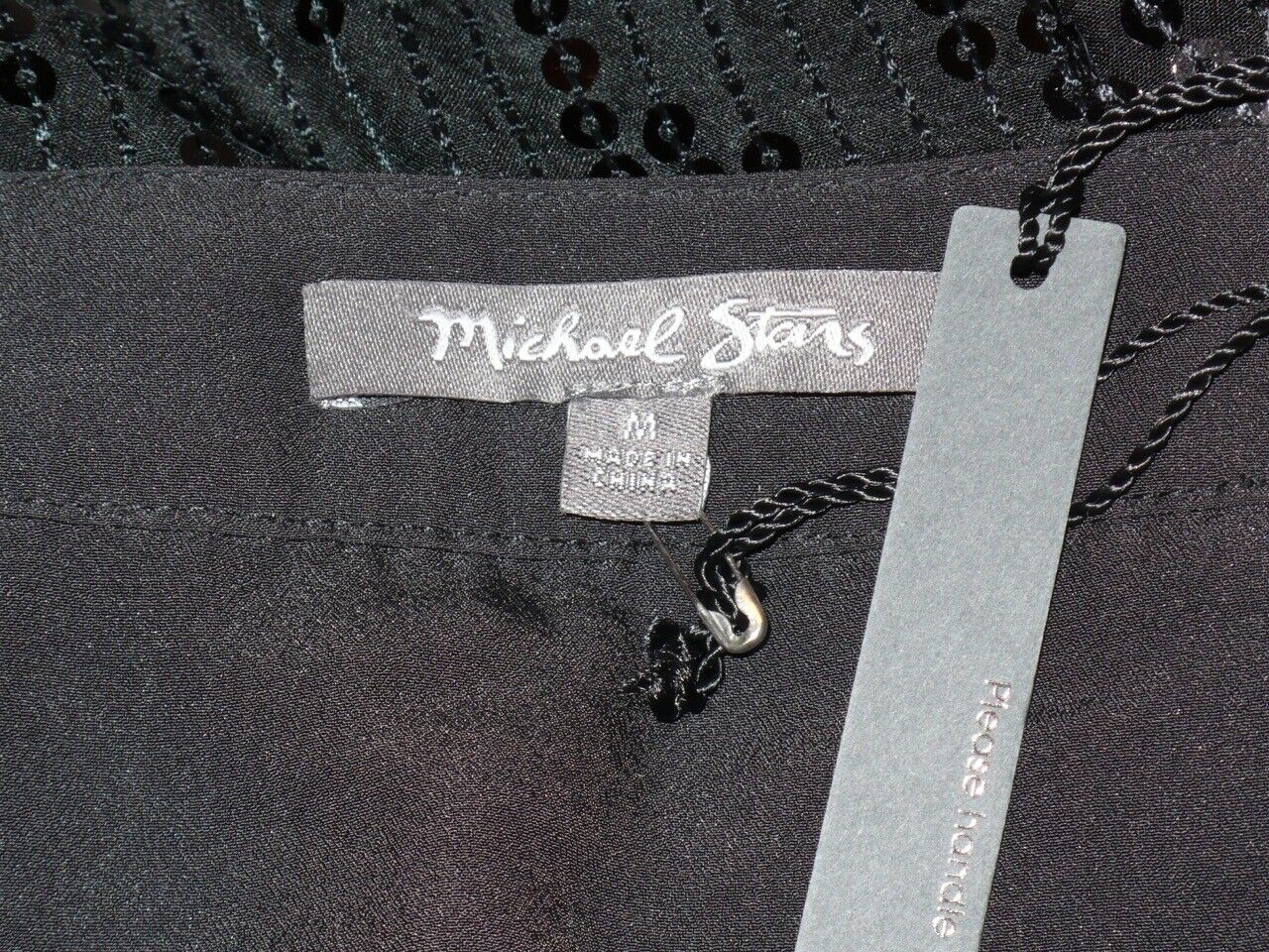 MICHAEL STARS NWT Black Sequin Silk Chiffon A-Lne Skirt Sz M