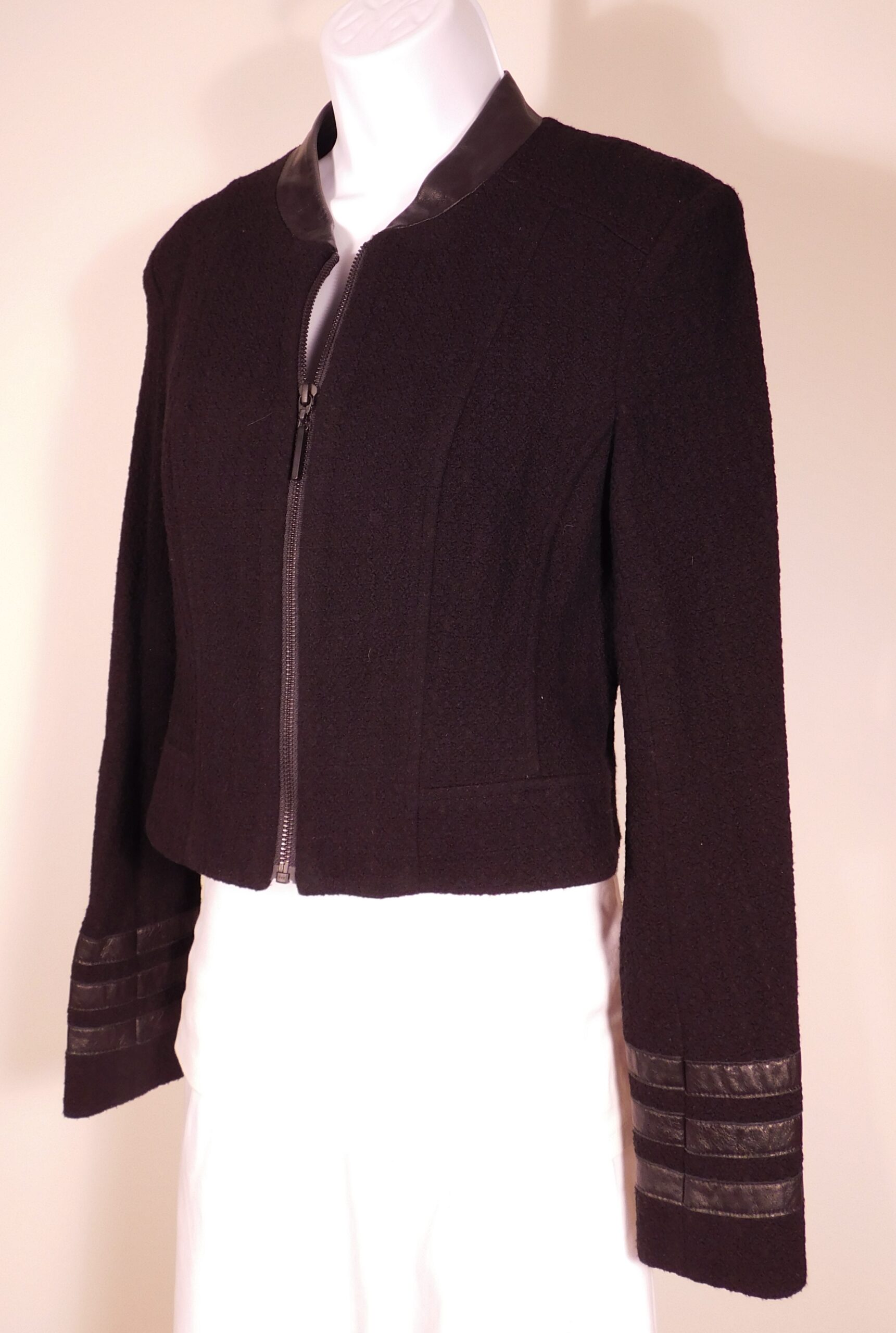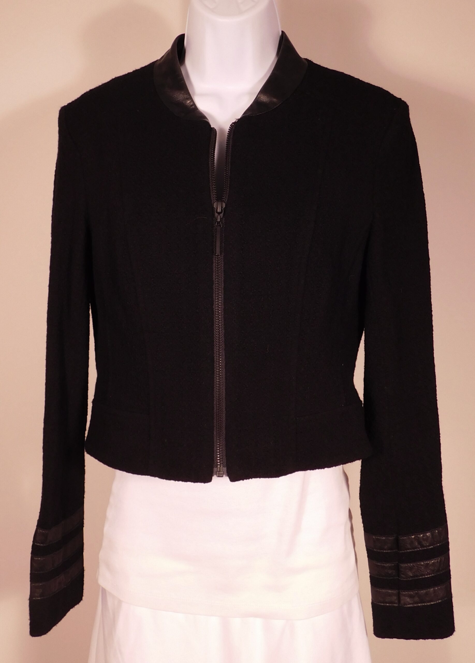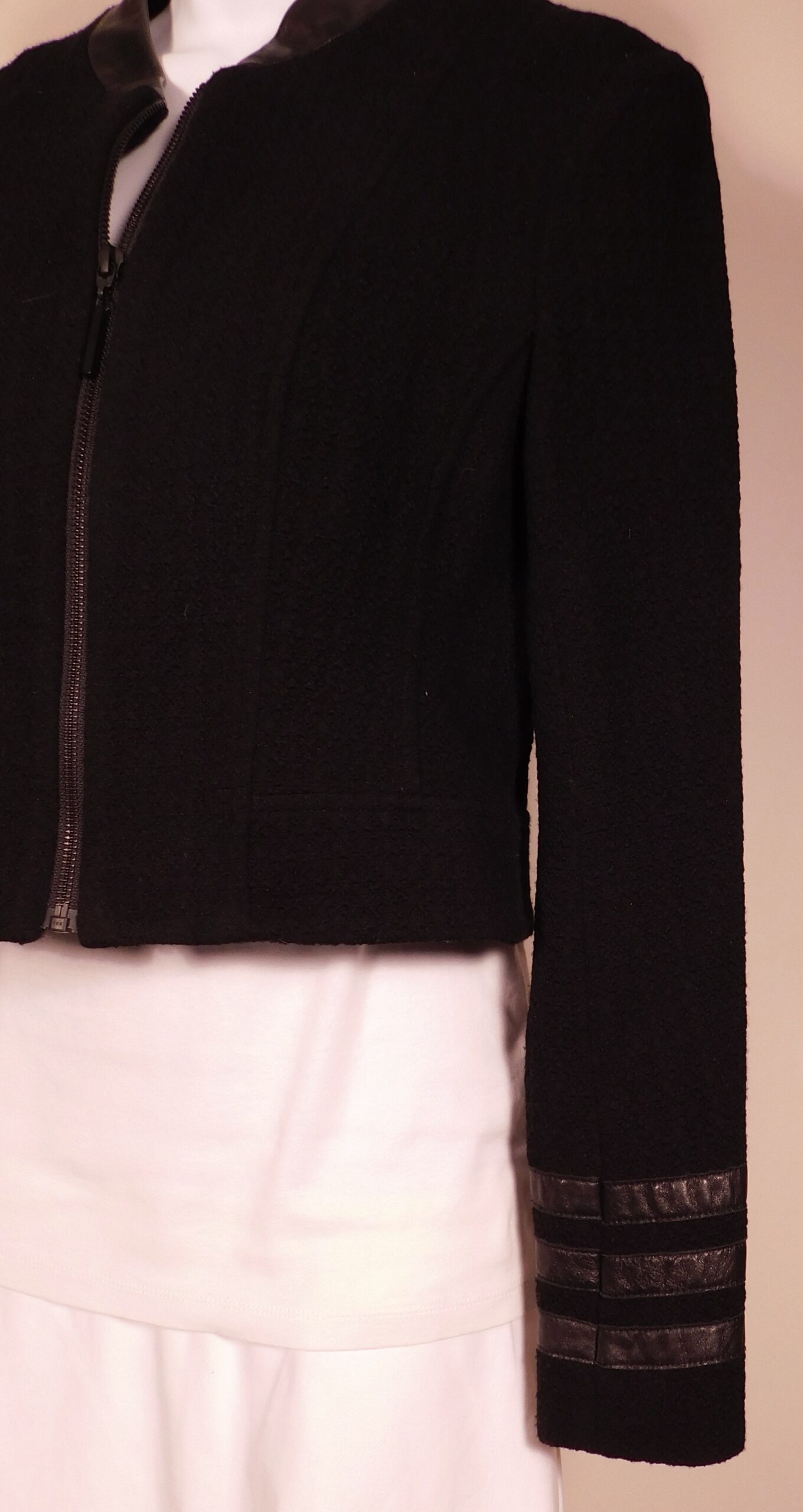 NANETTE LEPORE Women’s Black W Leather Trim Zip Front Jacket Sz 6