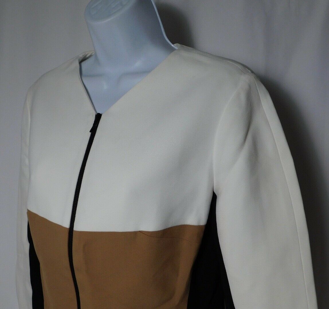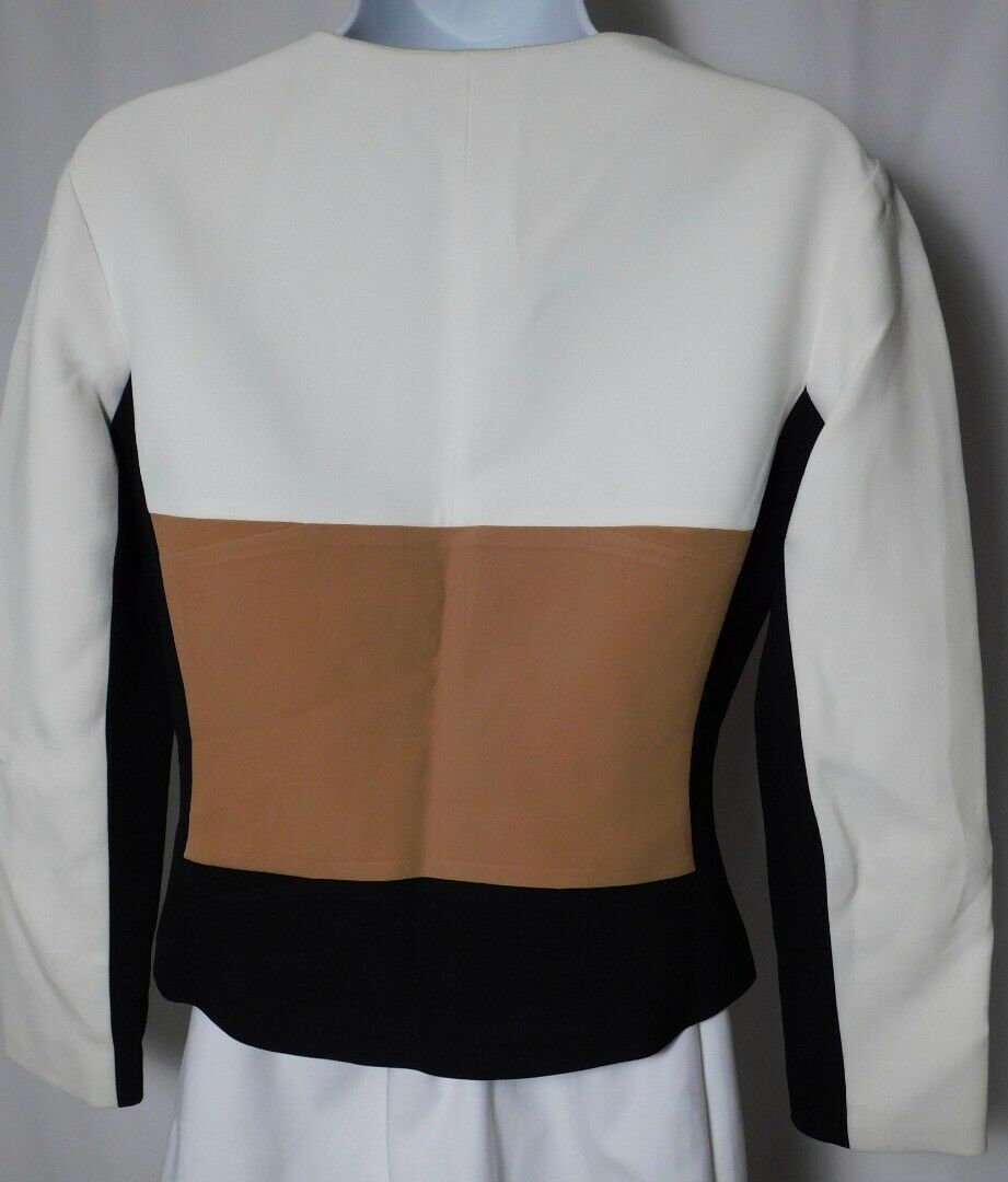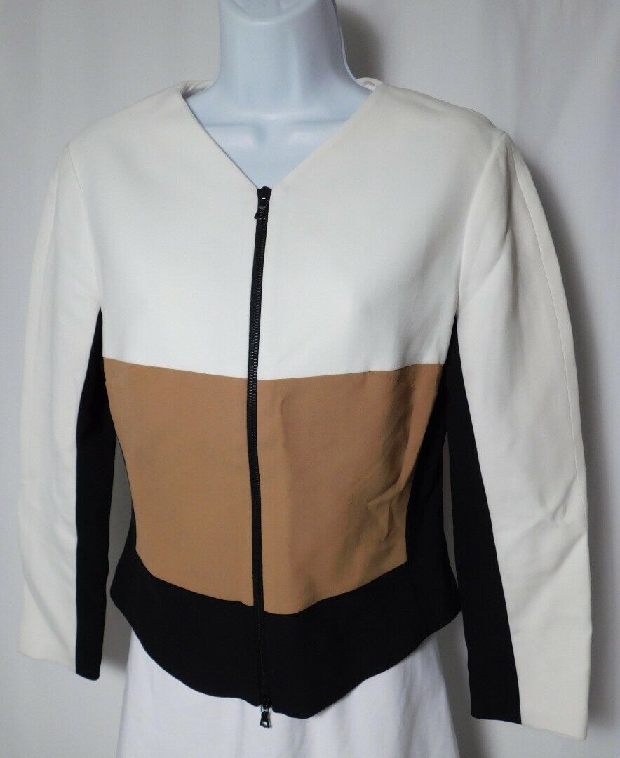 NARCISO RODRIGUEZ Women’s Ivory Tan Black Color Block Zip Front Jacket Sz 42