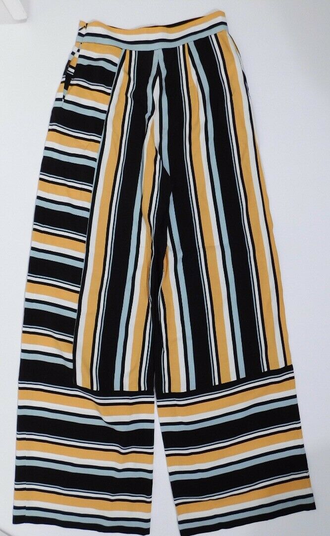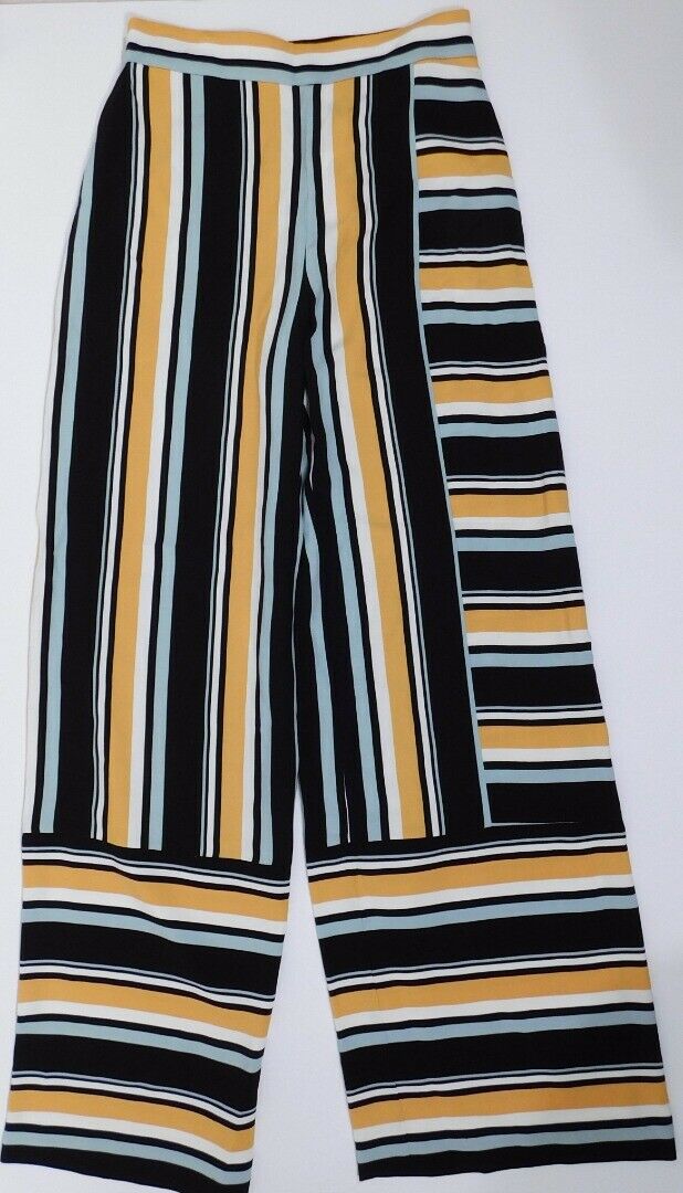 PARKER NWT Women’s Black Blue Gold White Stripe Wide Leg Pant Sz 4 ($298)
