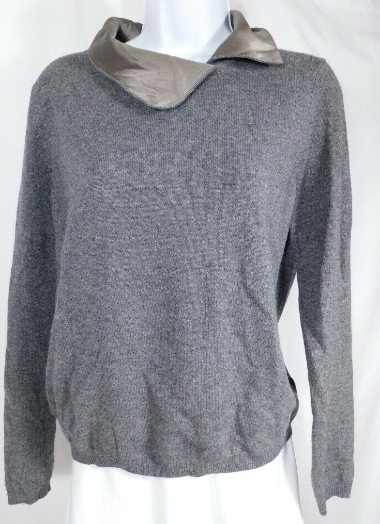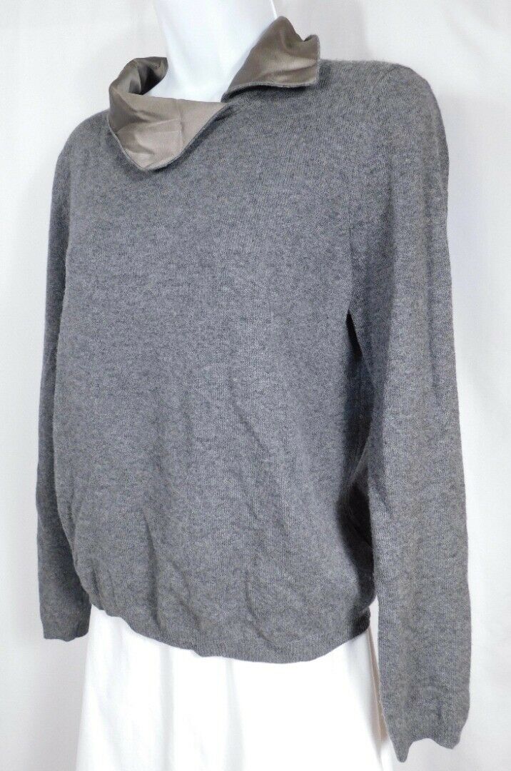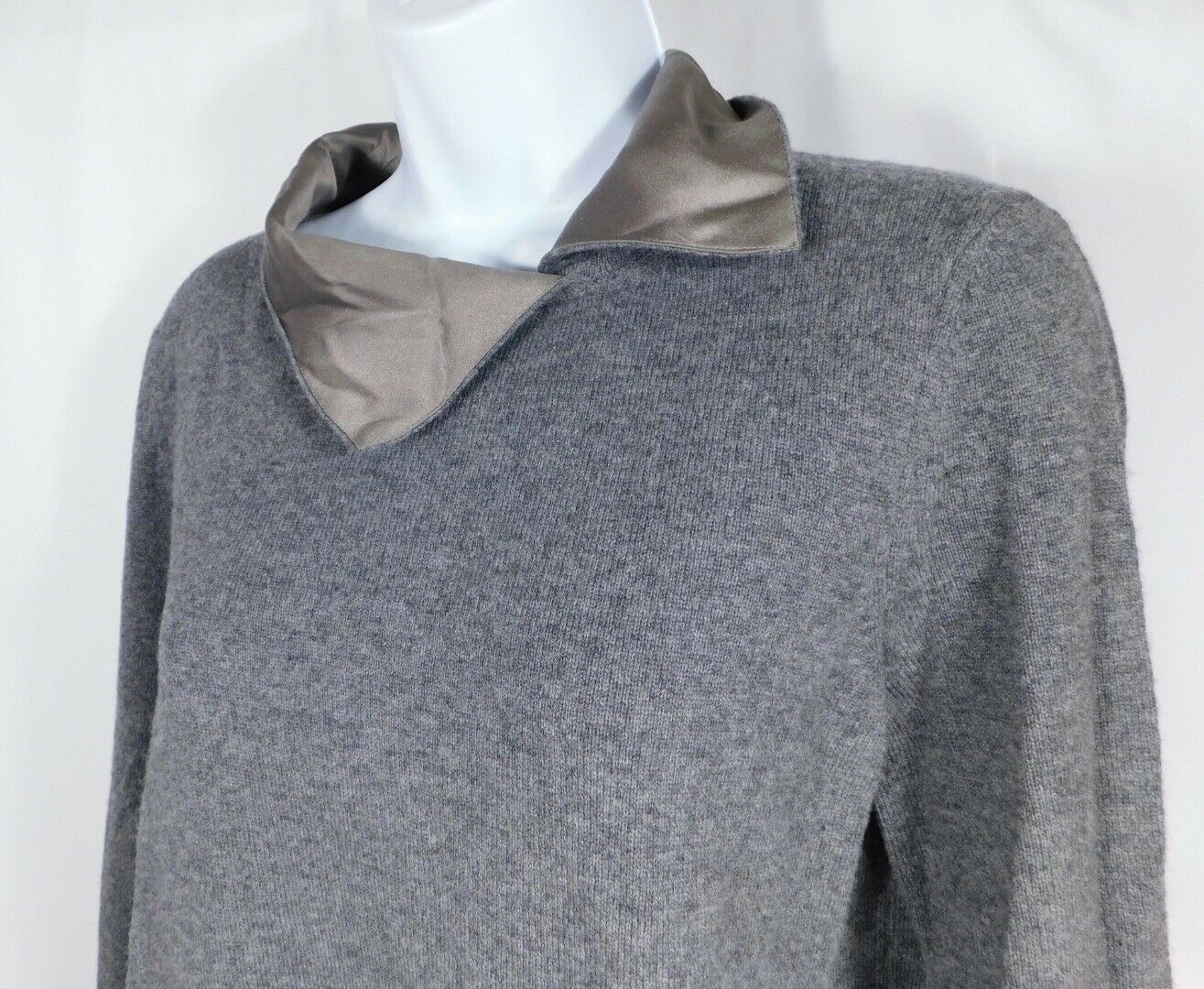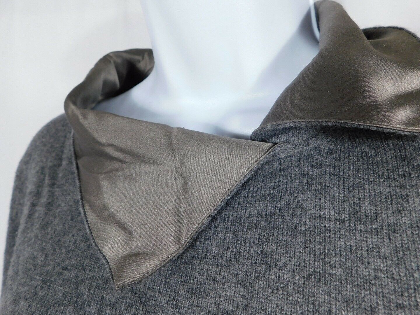 PESERICO TRICOT Charcoal Gray W Satin Collar Wool Cashmere Sweater Sz M (IT 42)