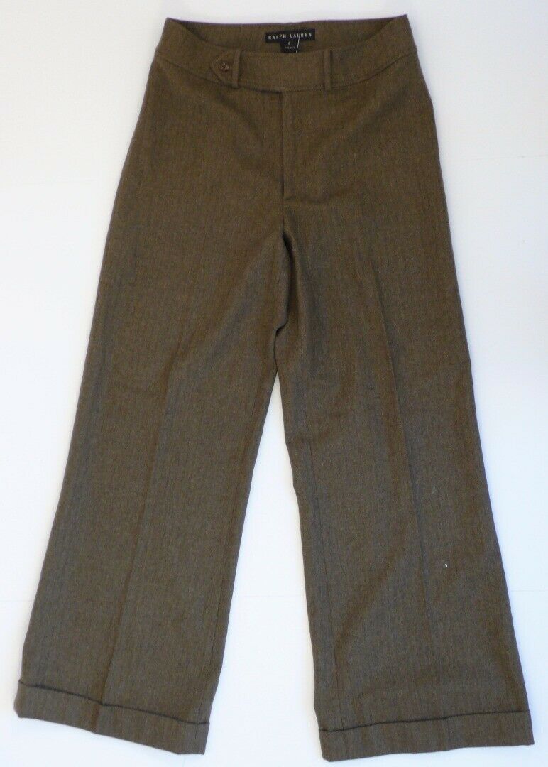 RALPH LAUREN Black Label Brown Herringbone Wool Cashgora Stretch Cuffed Pants Sz 6