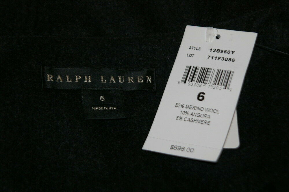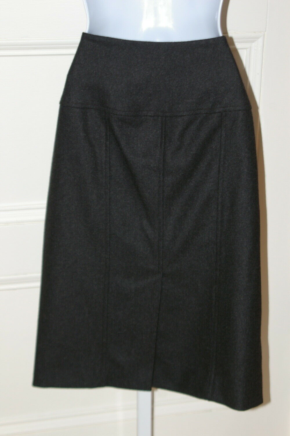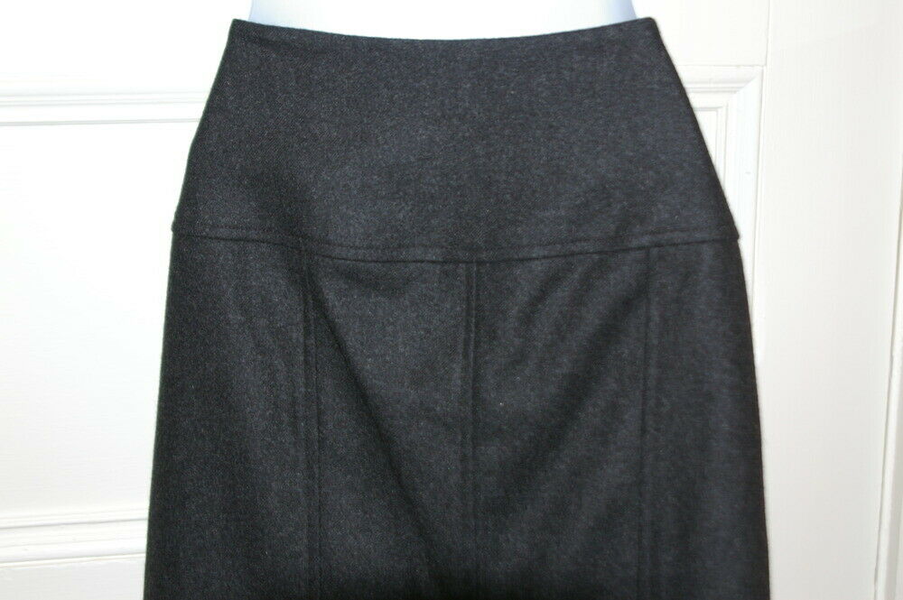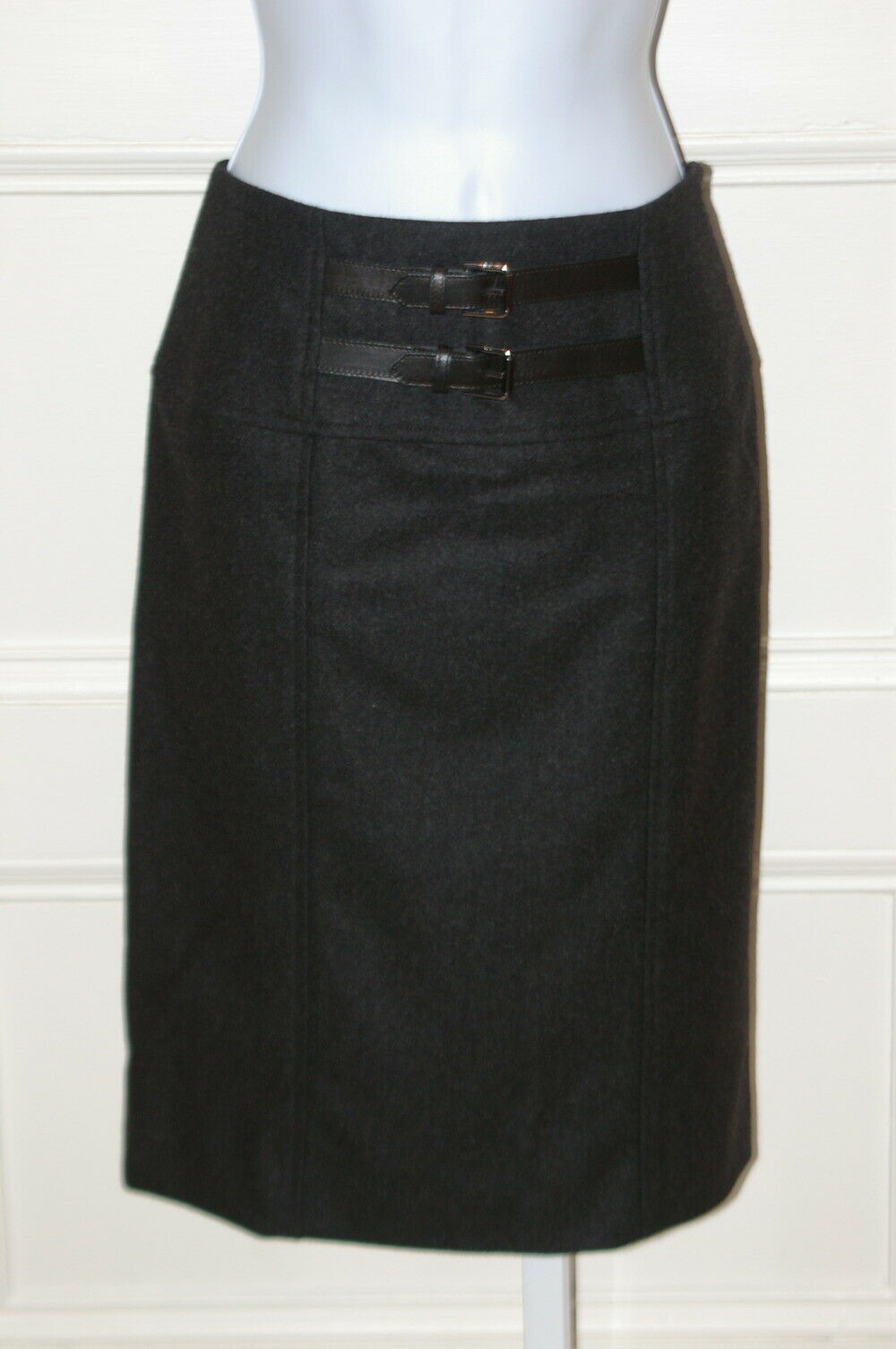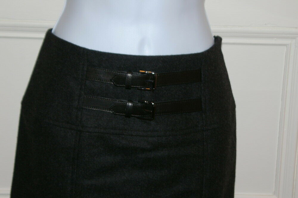 RALPH LAUREN BLACK LABEL NWT Charcoal Gray Wool Skirt W/ Leather Detail at Hips Sz 6 – originally $698