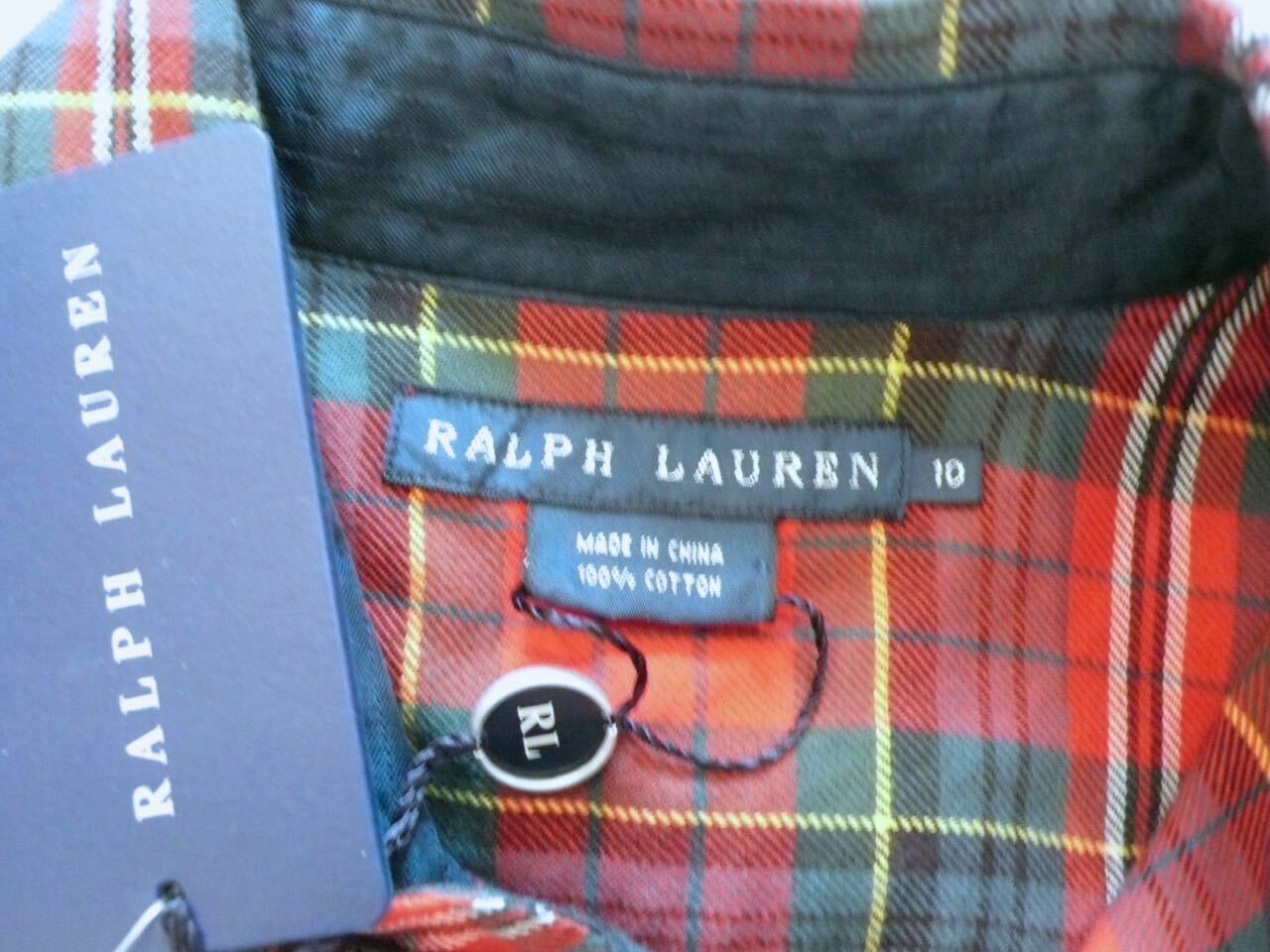 RALPH LAUREN NWT Women's Red Green White Plaid Cotton Button Front Shirt Sz 10
