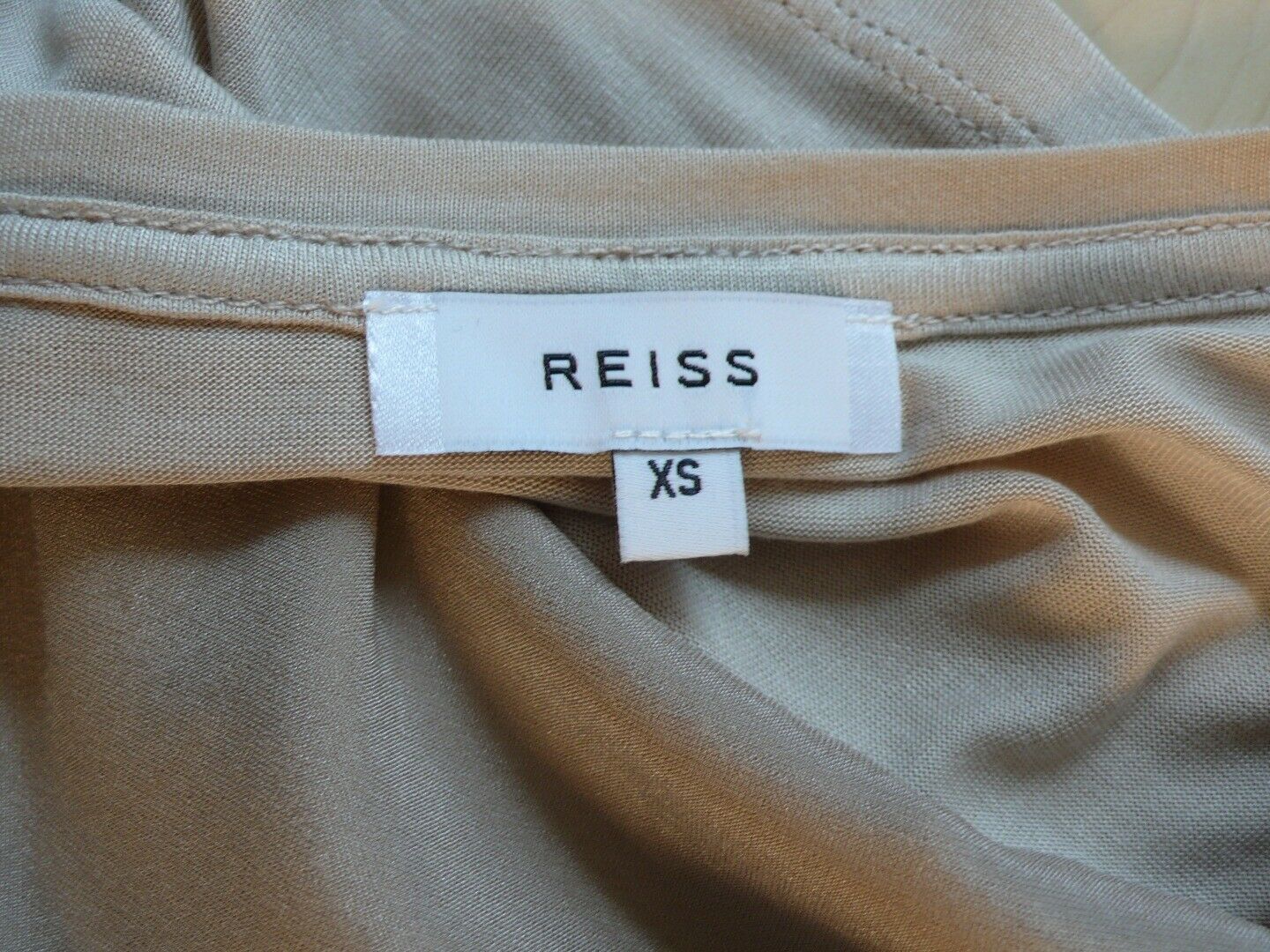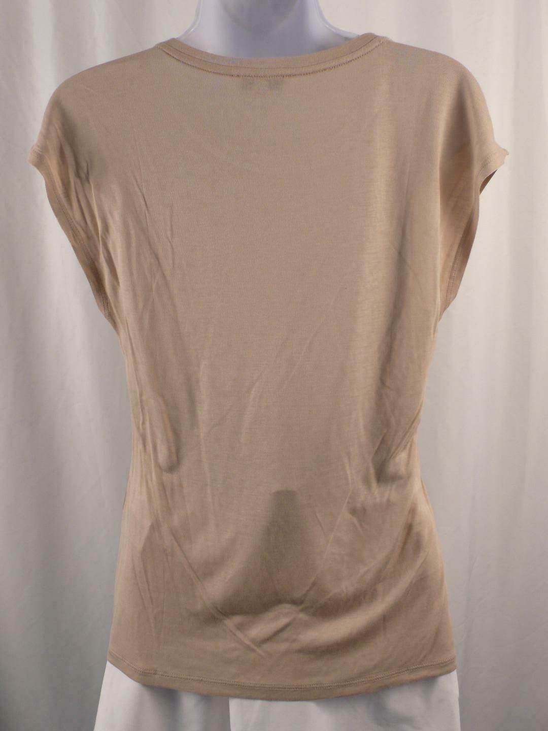 REISS Women’s Beige Satin Silk Front Cap Sleeve Crewneck Blouse Sz XS