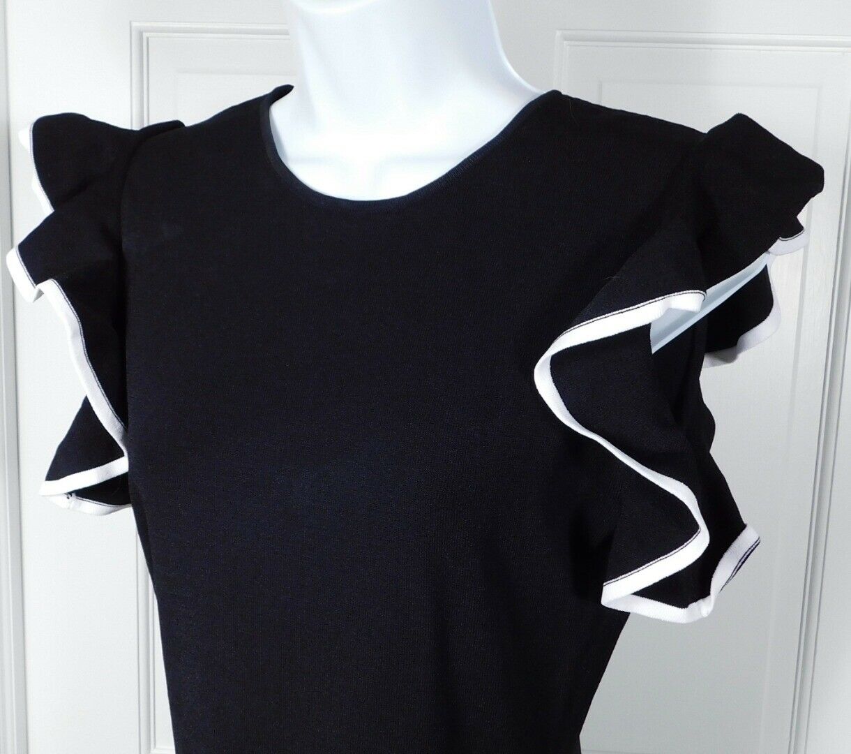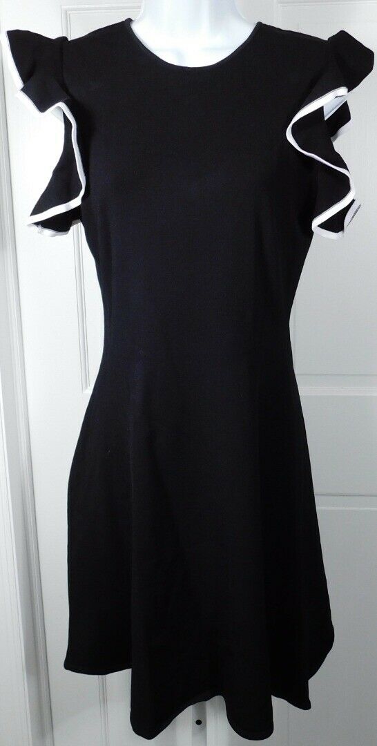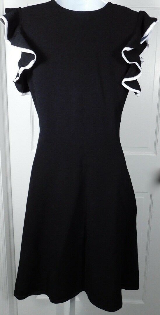 SHOSHANNA Women’s Black White Knit Ruffled Fit & Flare Saya Dress Sz M ($400)