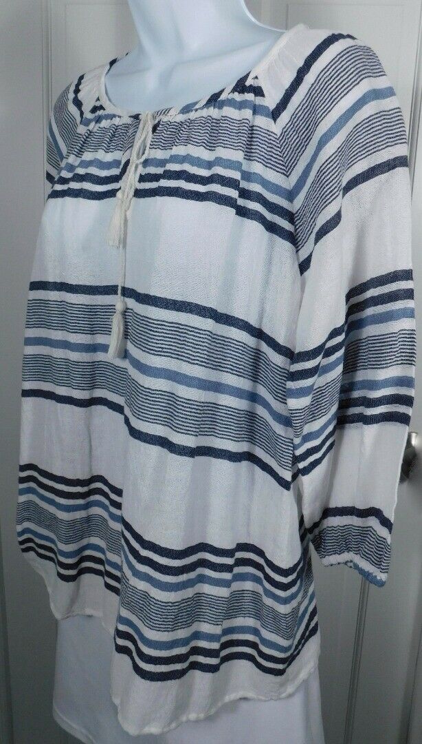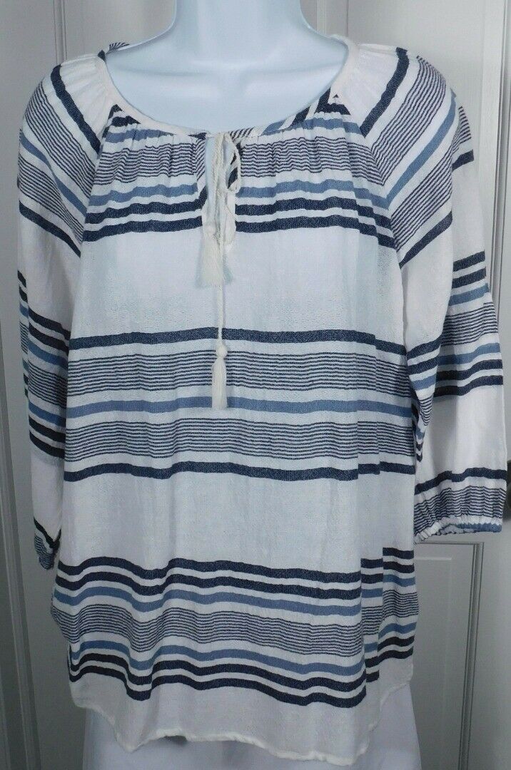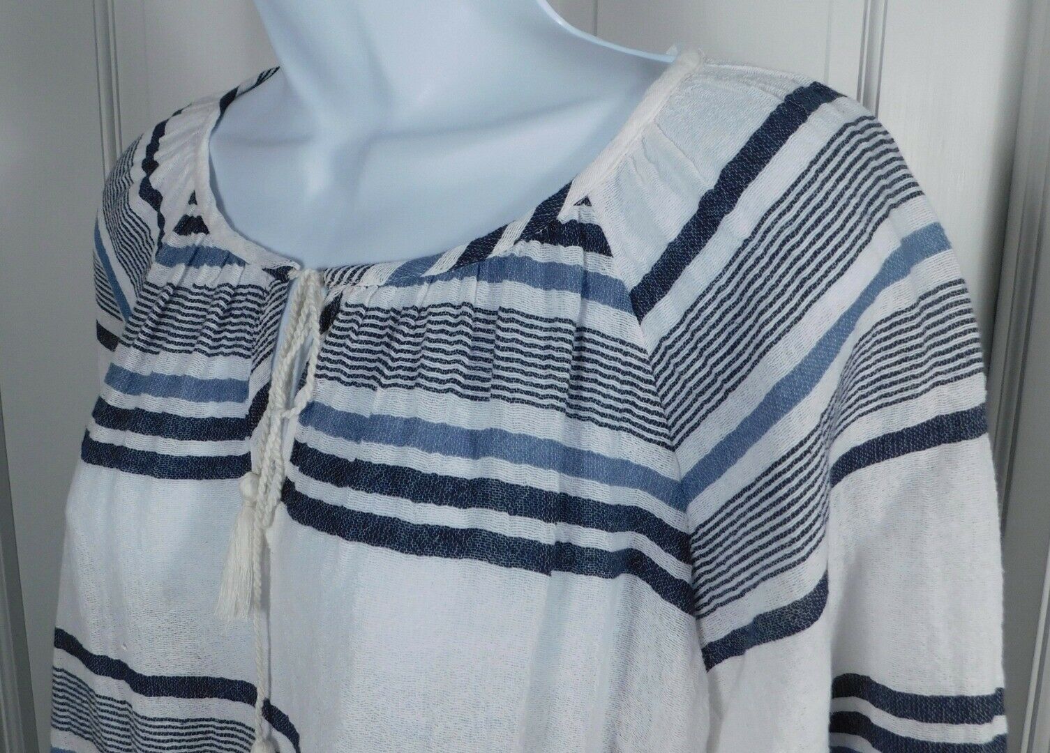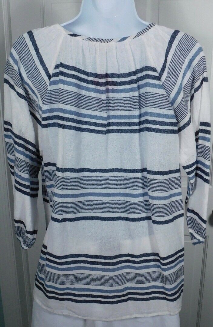 SOFT BY JOIE Women's Blue & White Striped Cotton 34 Sleeve Poet Blouse Sz S