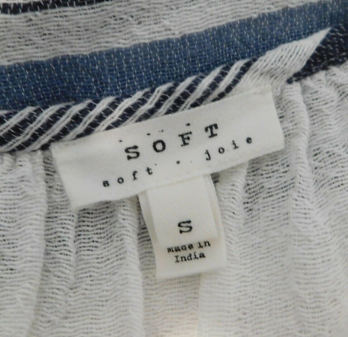SOFT BY JOIE Women’s Blue & White Striped Cotton 34 Sleeve Poet Blouse Sz S