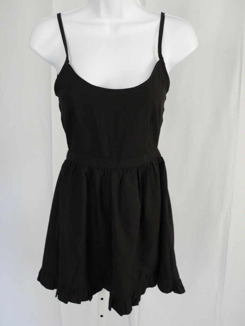 TOBI NWOT Women’s Black Open Back Tie Back Ruffle Hem A-Line Halter Dress Sz S