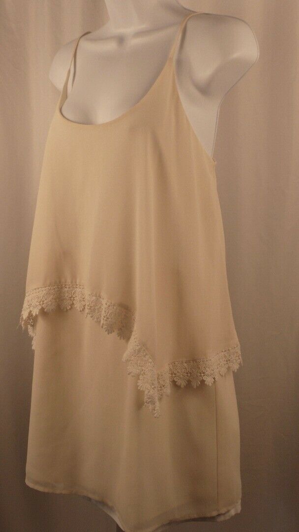 TOBI Women’s Ivory Lace Trim Sleeveless Tiered Tunic Blouse Sz L