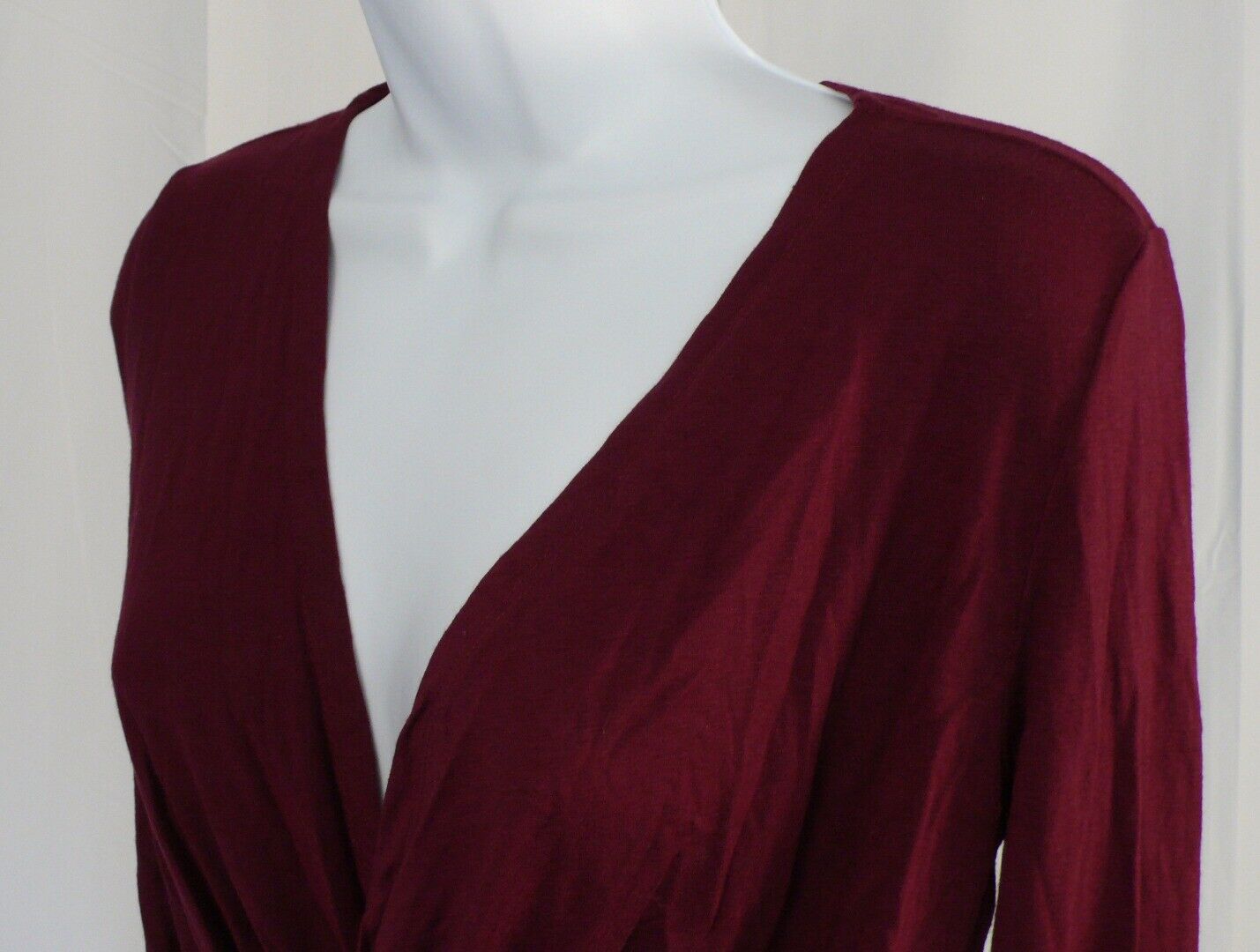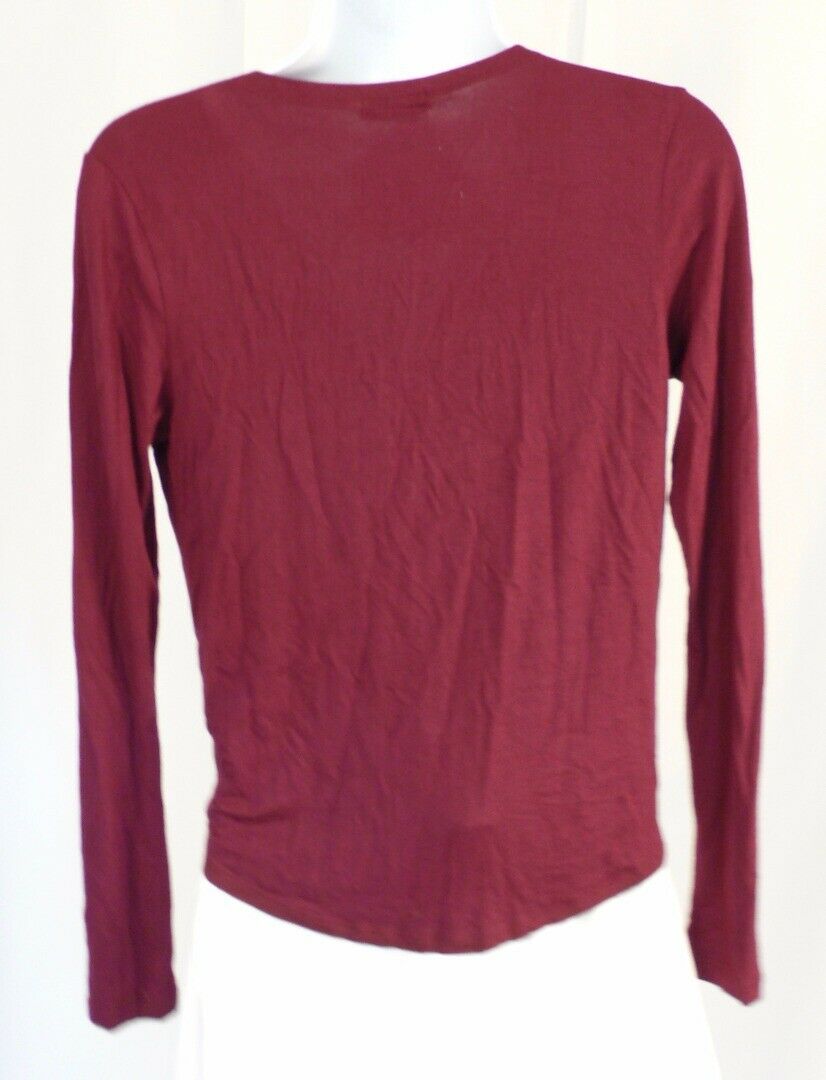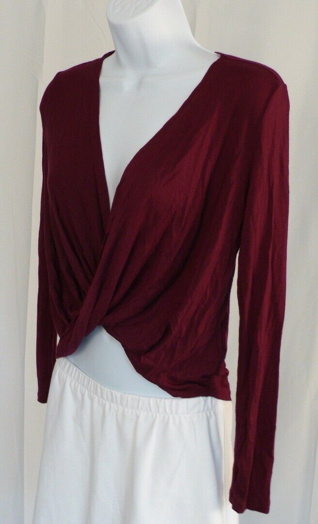 TOBI Women’s Merlot Red Knit Low Drape Front Long Sleeve Blouse Sz S