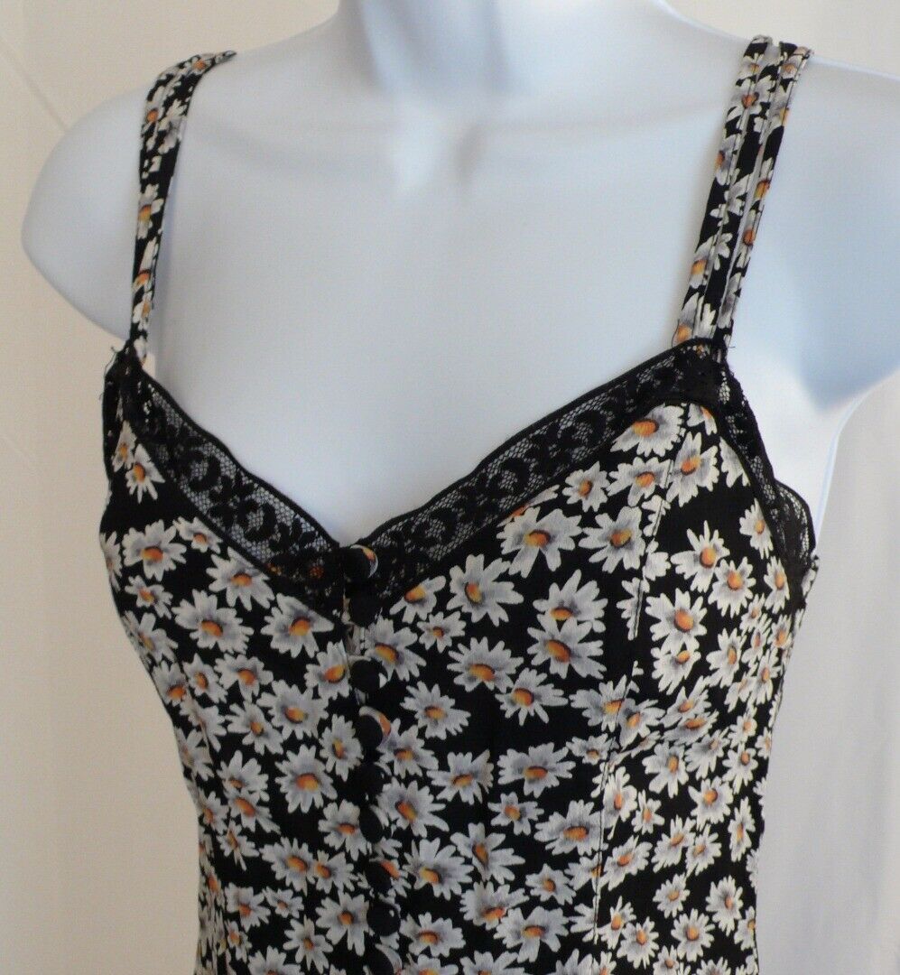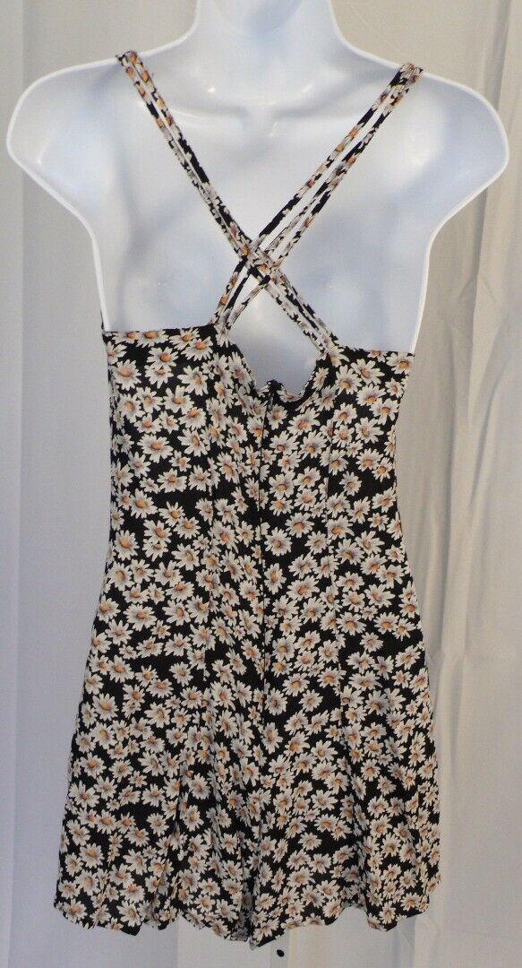 TOP SHOP Black & White Daisy Print Spaghetti Strap Lace Trim Romper Sz S