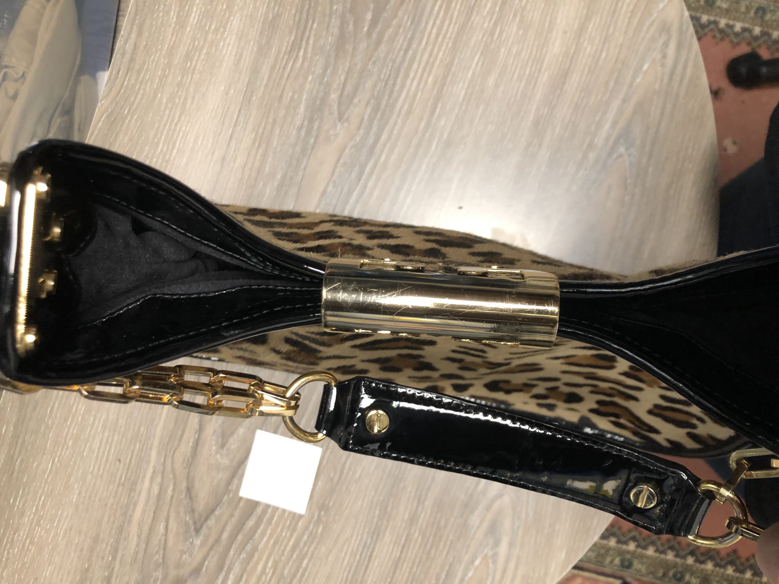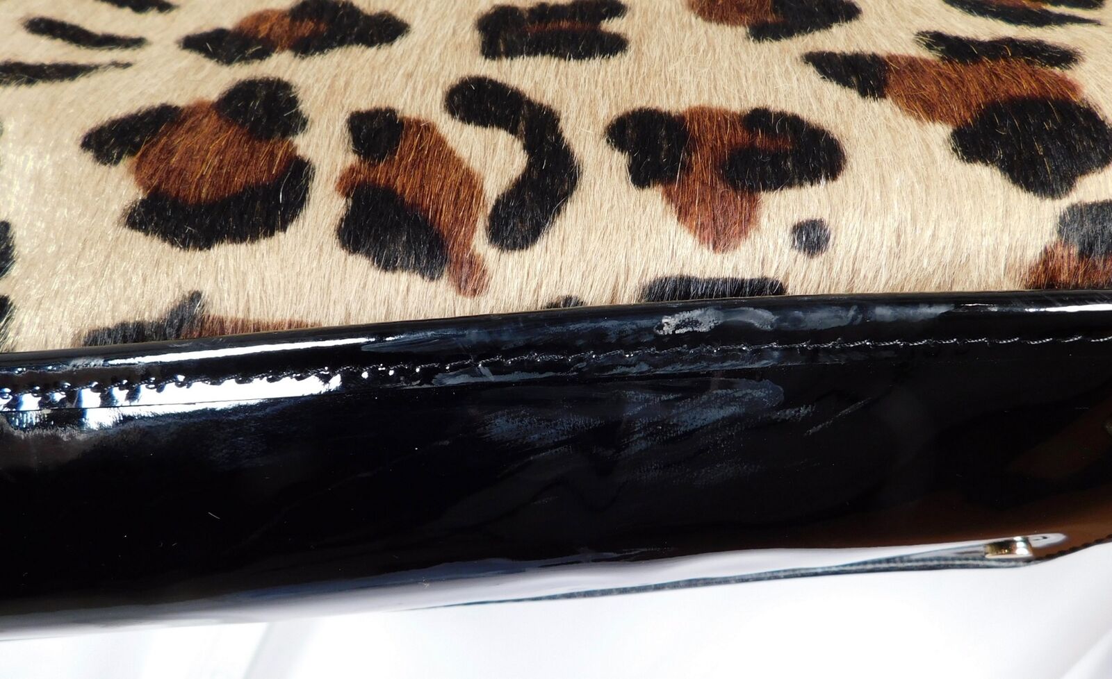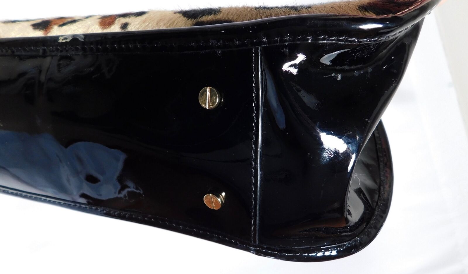 TORY BURCH Cheetah Print Patent Leather Trim Pony Hair Gold Chain Tote Handbag