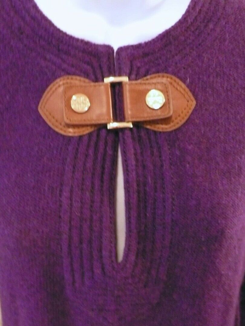 TORY BURCH Women’s Eggplant Wool Blend V-Neck Tunic Sweater Sz S