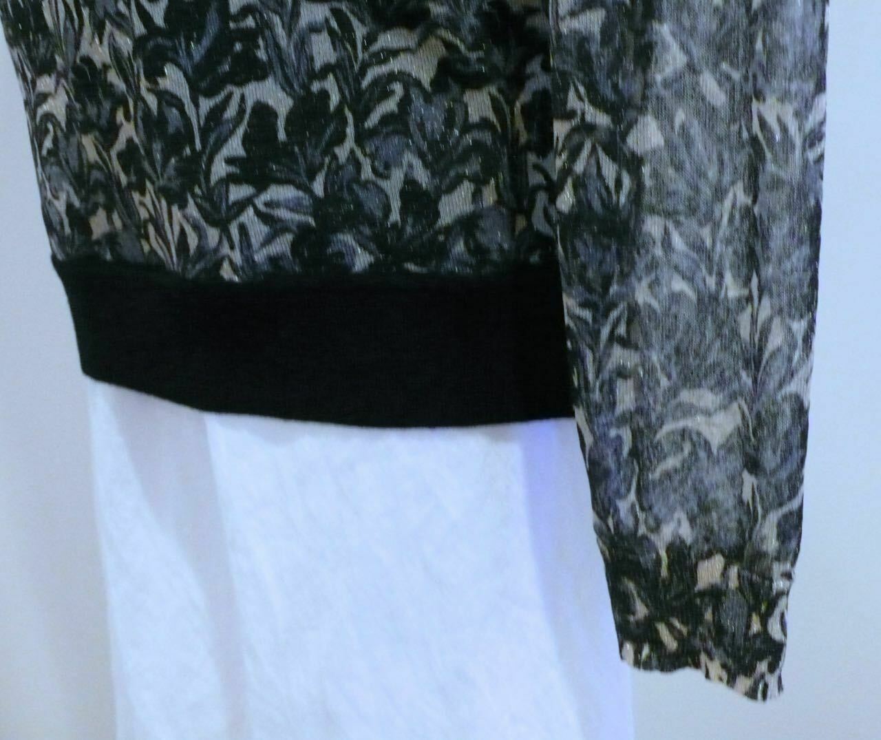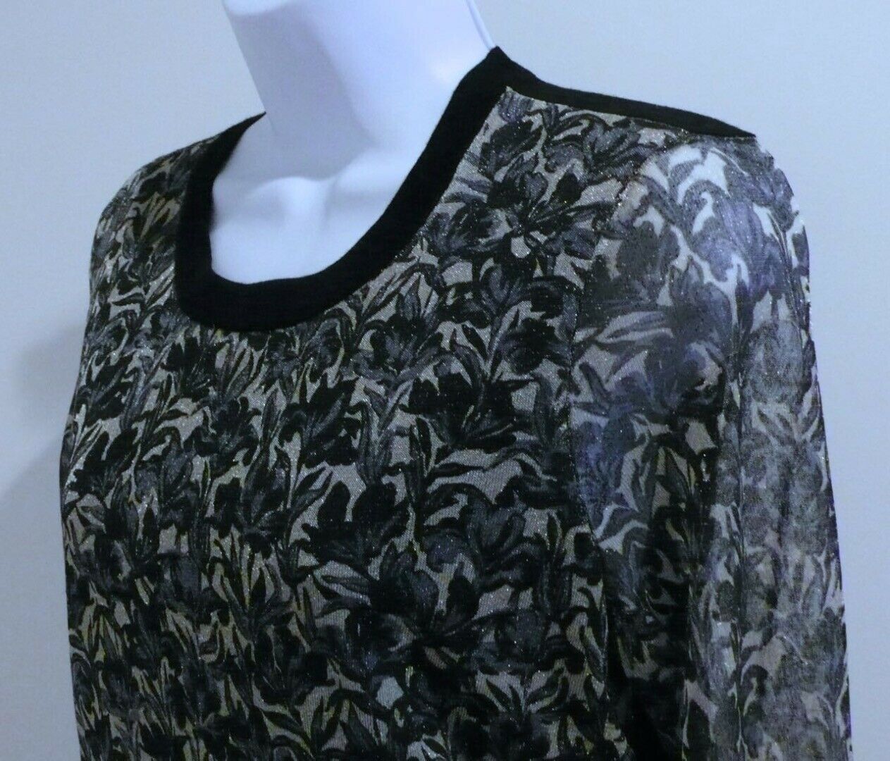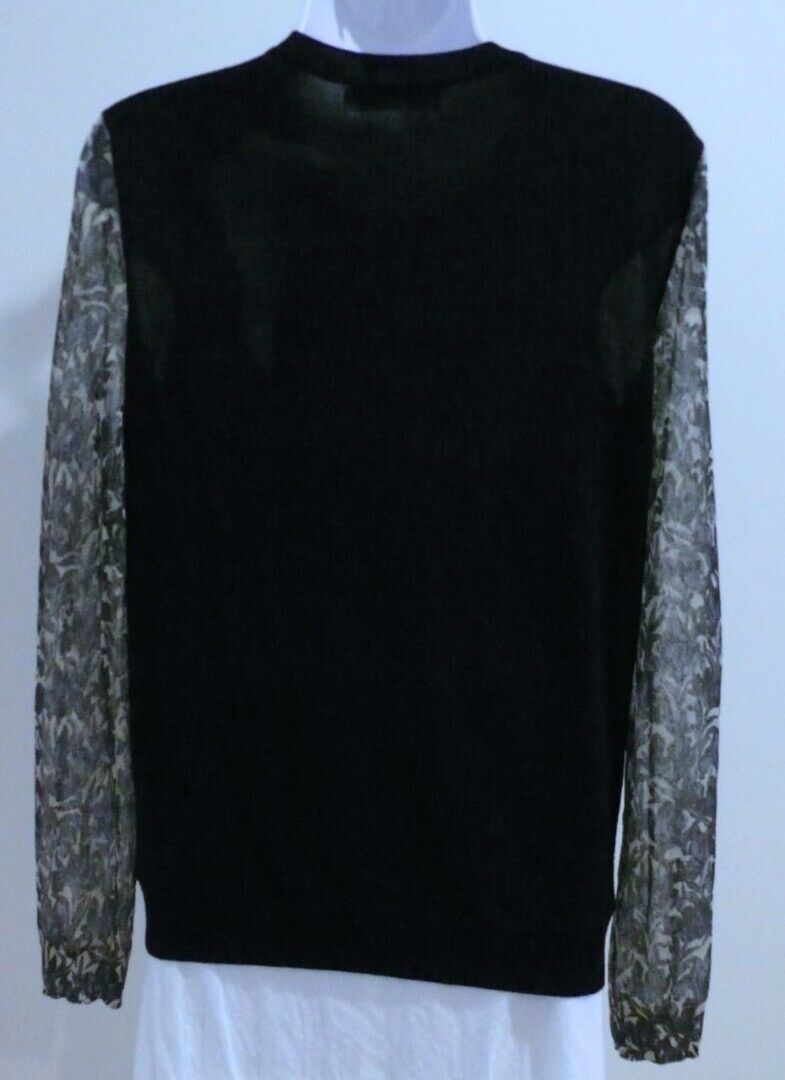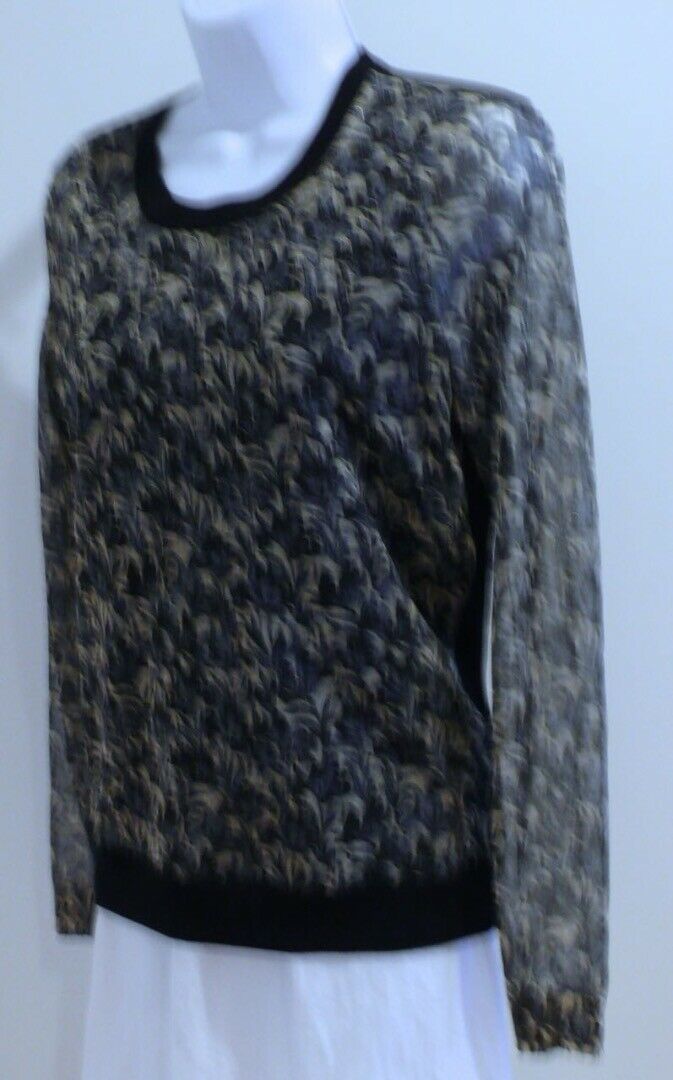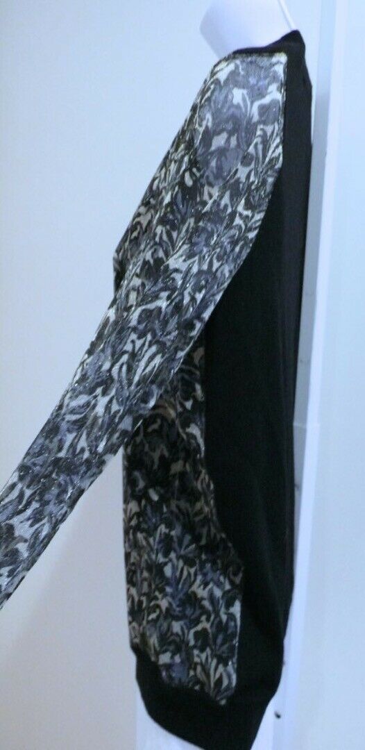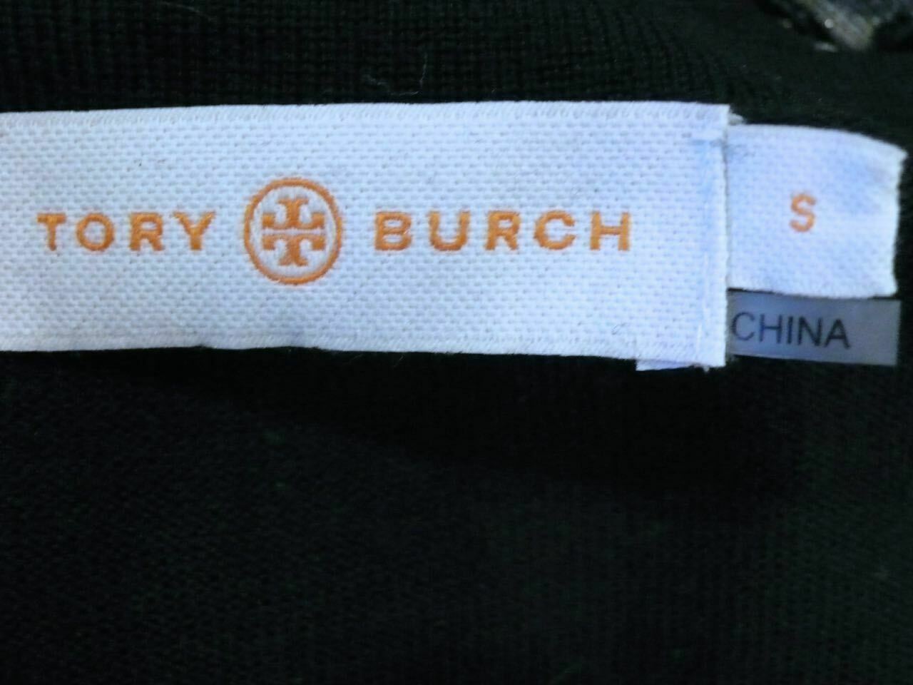 TORY BURCH Women’s Navy Gold Metallic Print Front Merino Wool Sweater Sz S