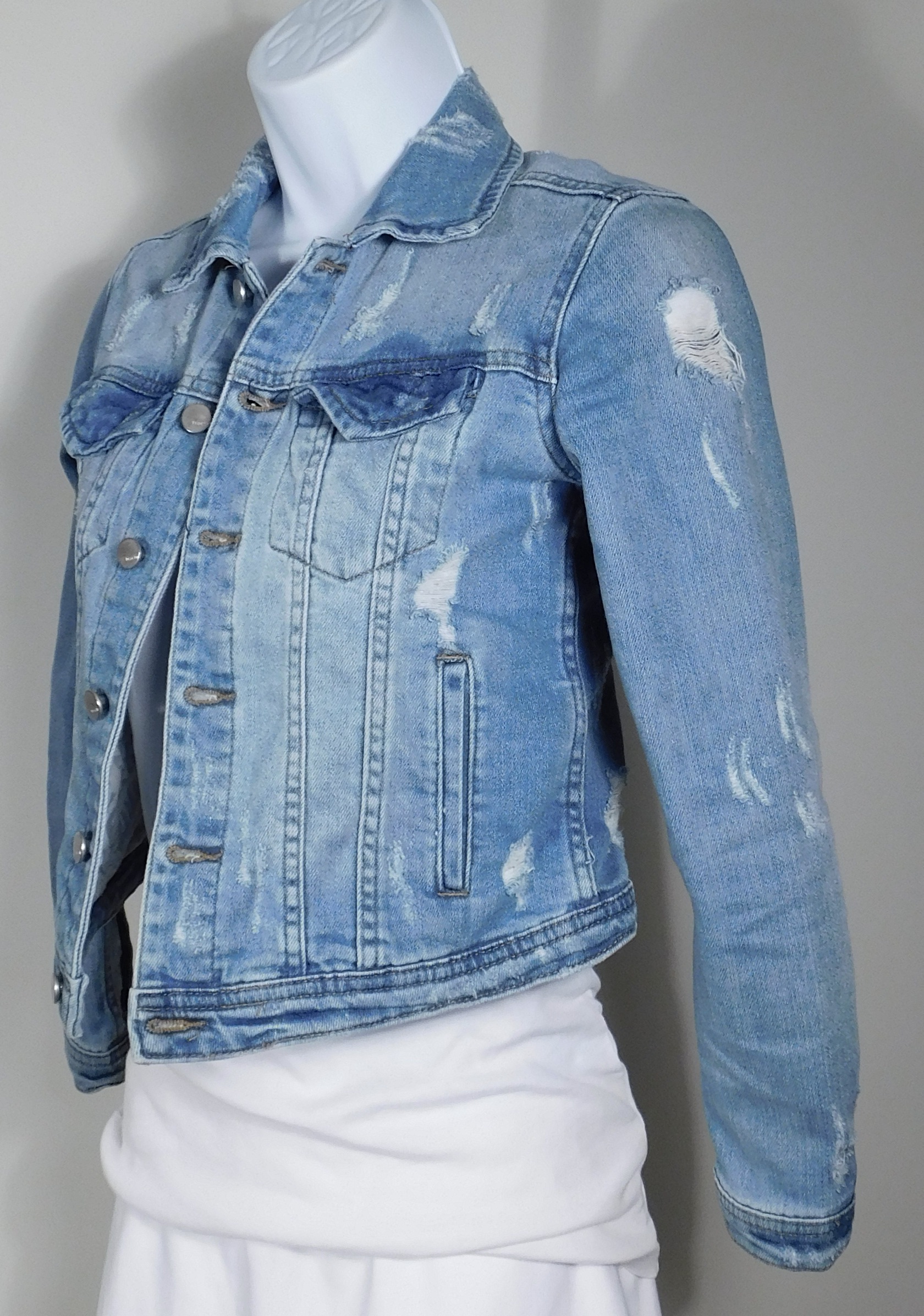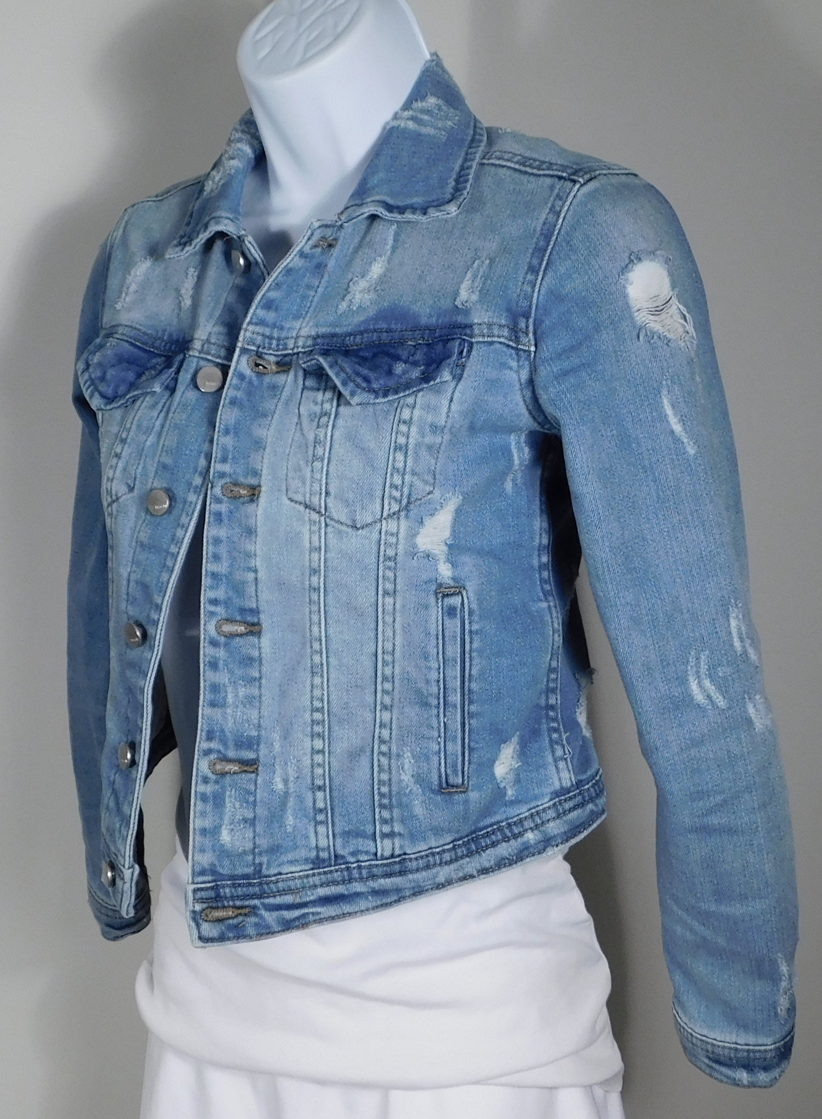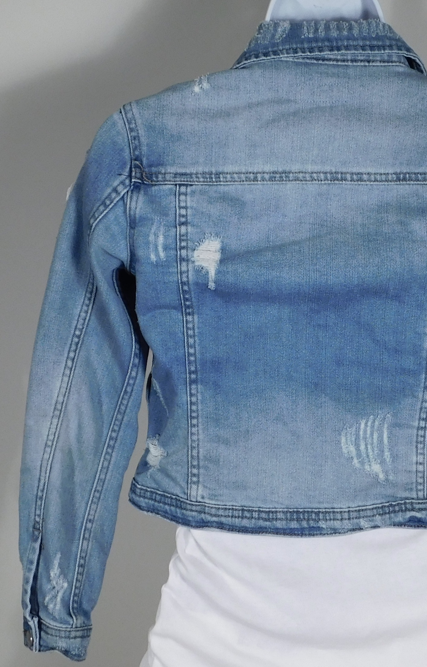 TRACTR Girl’s Blue Distressed Soft Cotton Stretch Denim Jacket Sz S