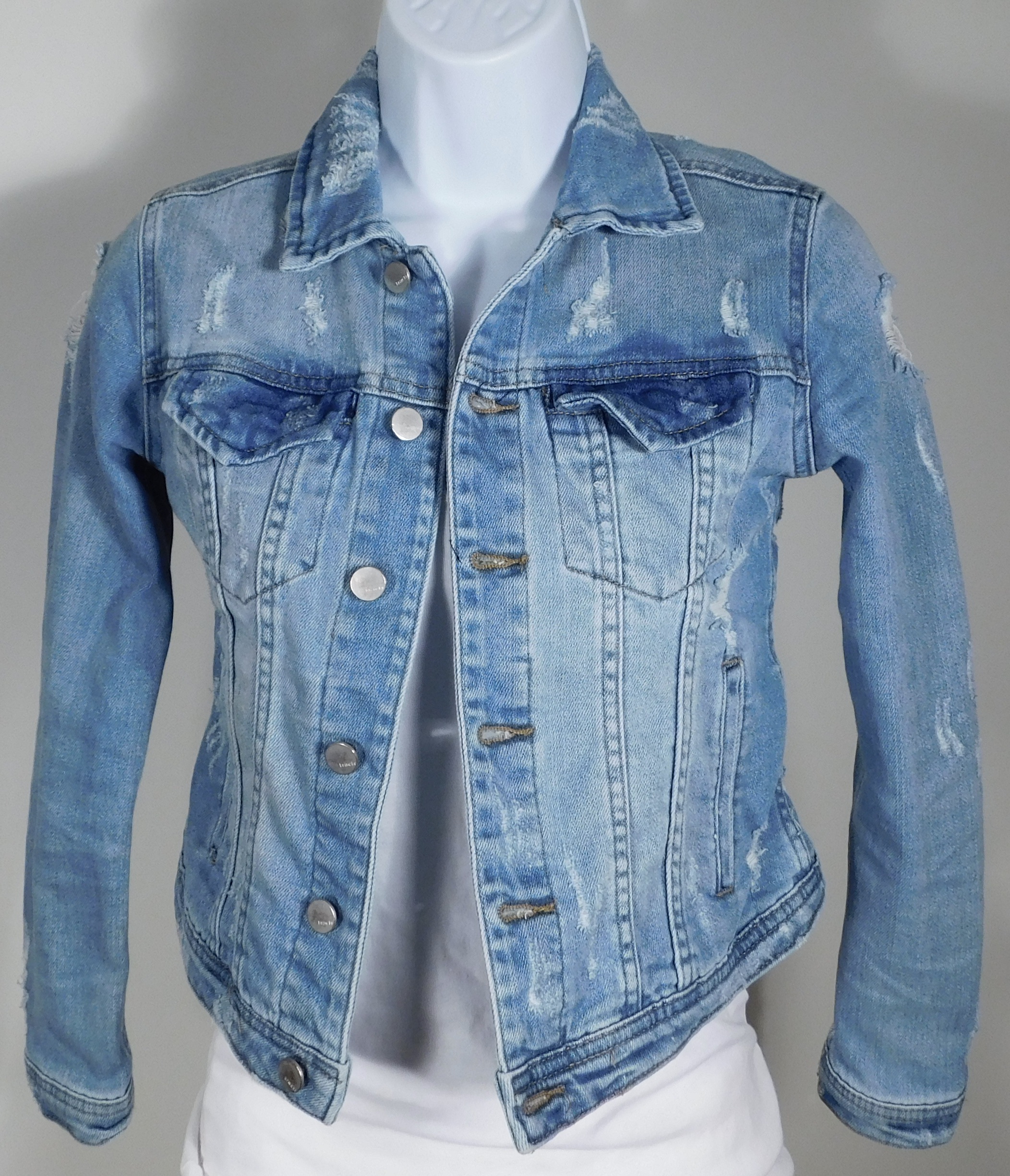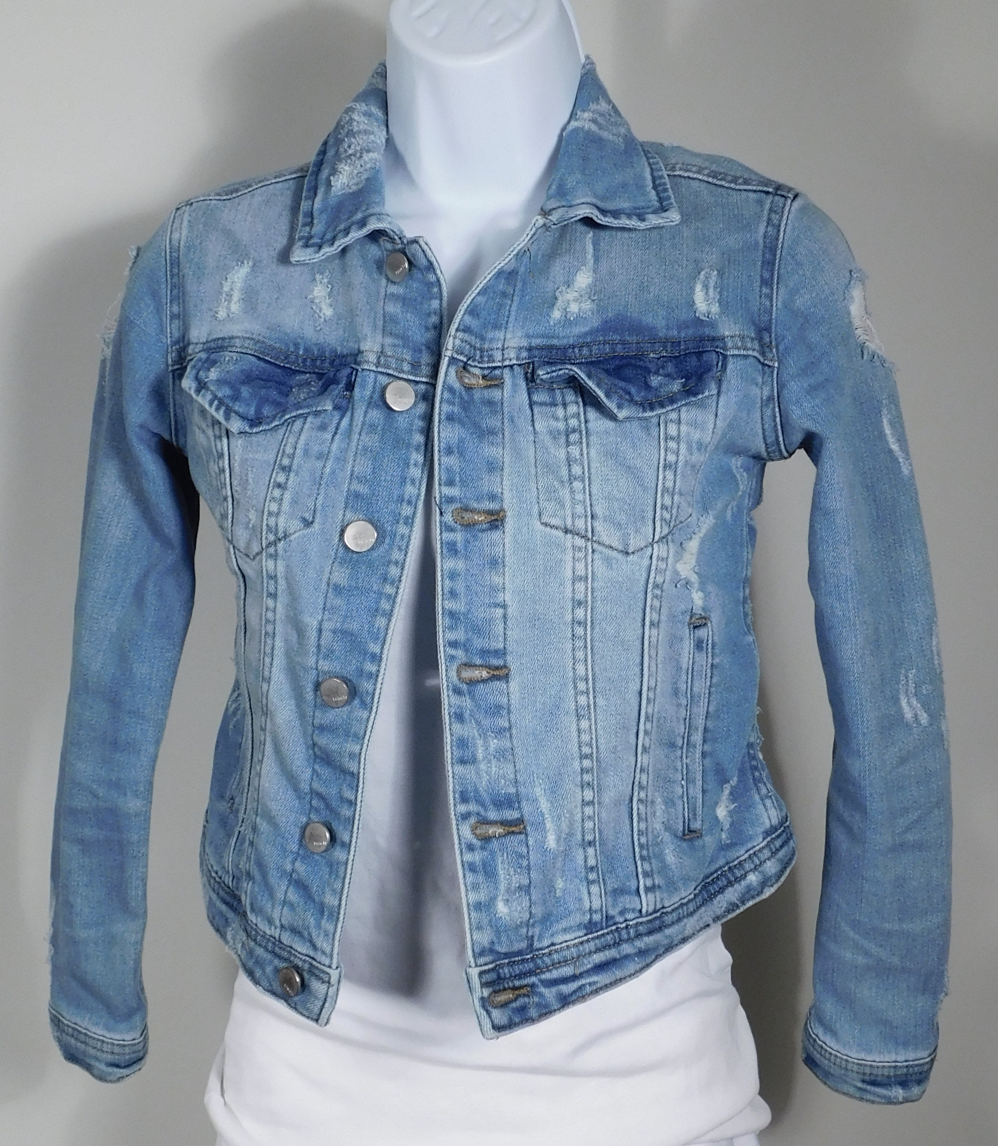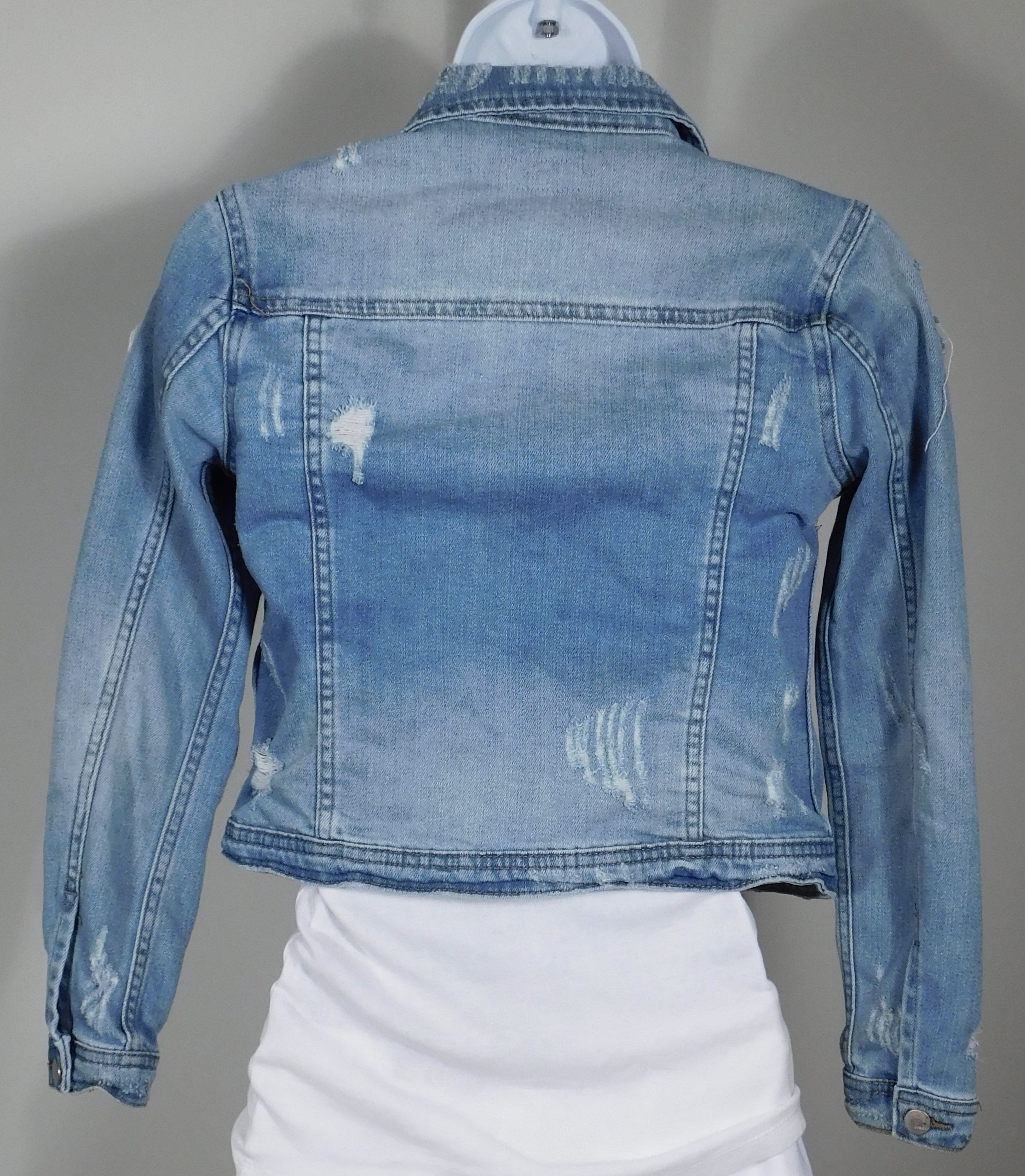 TRACTR Girl’s Blue Distressed Soft Cotton Stretch Denim Jacket Sz S