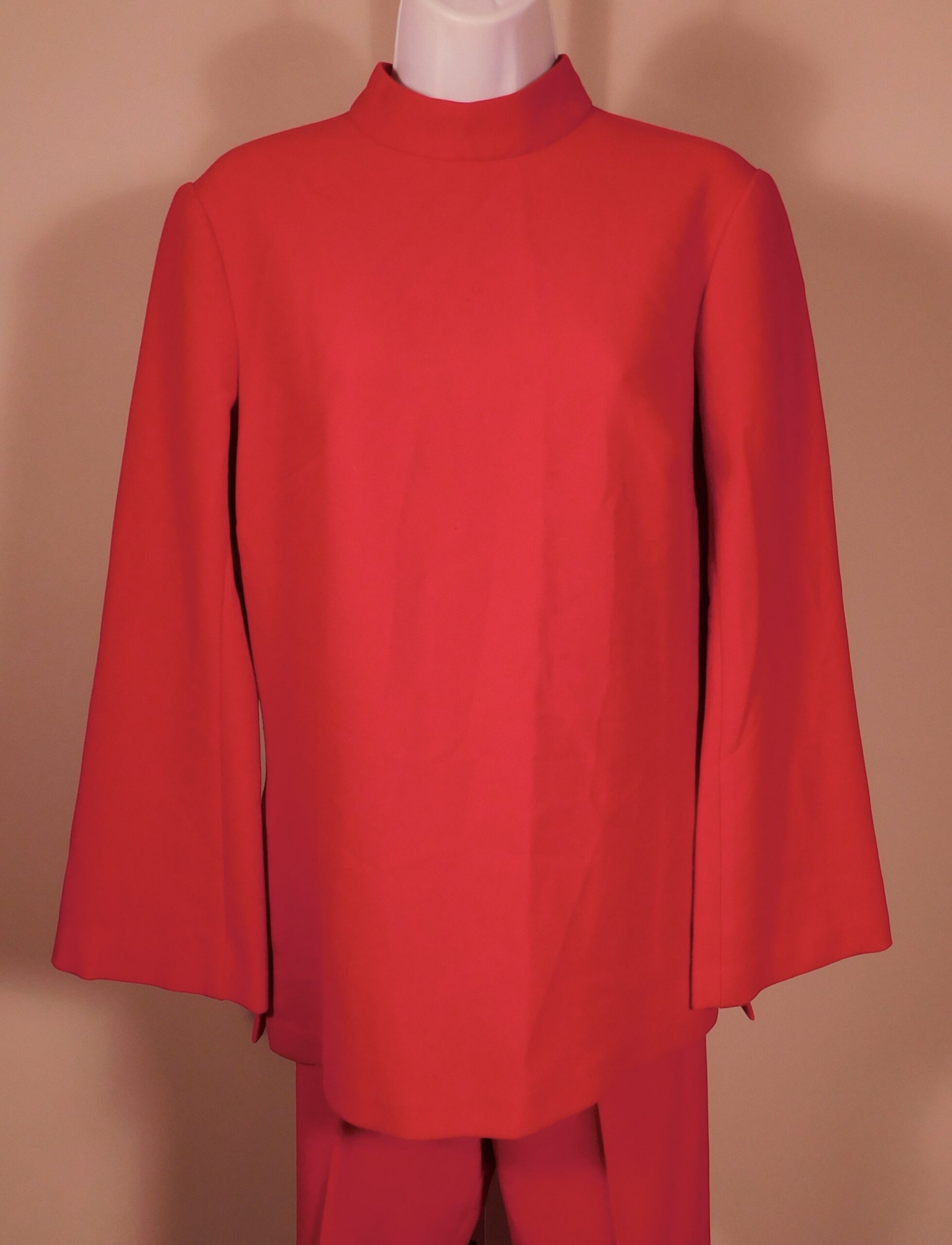 TRINA TURK Women’s Red High Neck Cotton Blend Long Sleeve Keyhole Back Hostess Tunic Sz 4 ($248)