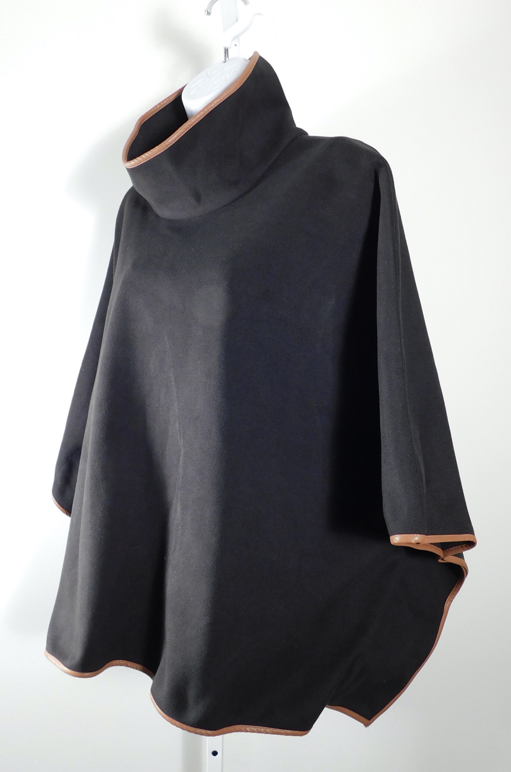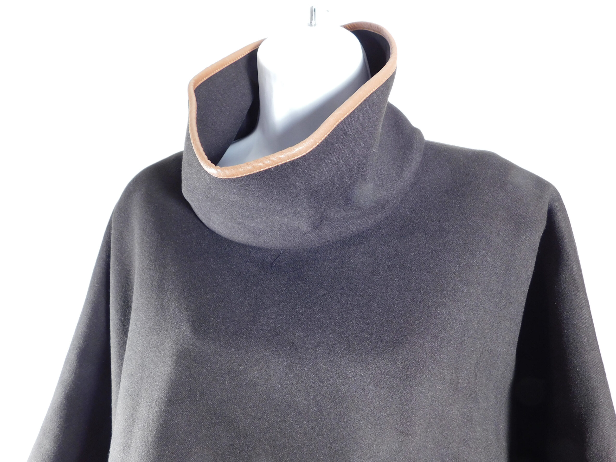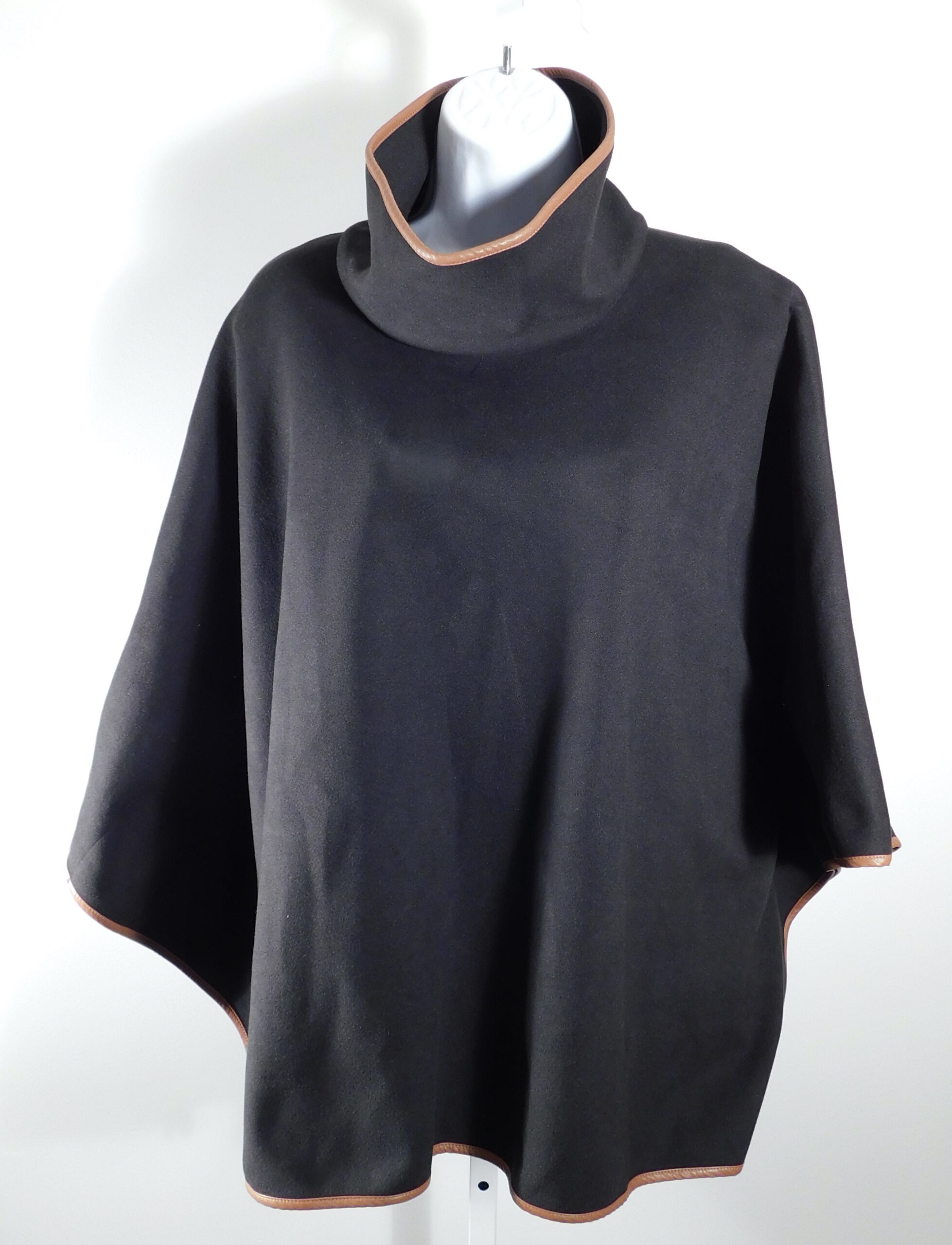 TUCKERNUCK Women’s Black Leather Trim Funnel Neck Piper Poncho Sz OS ($128)