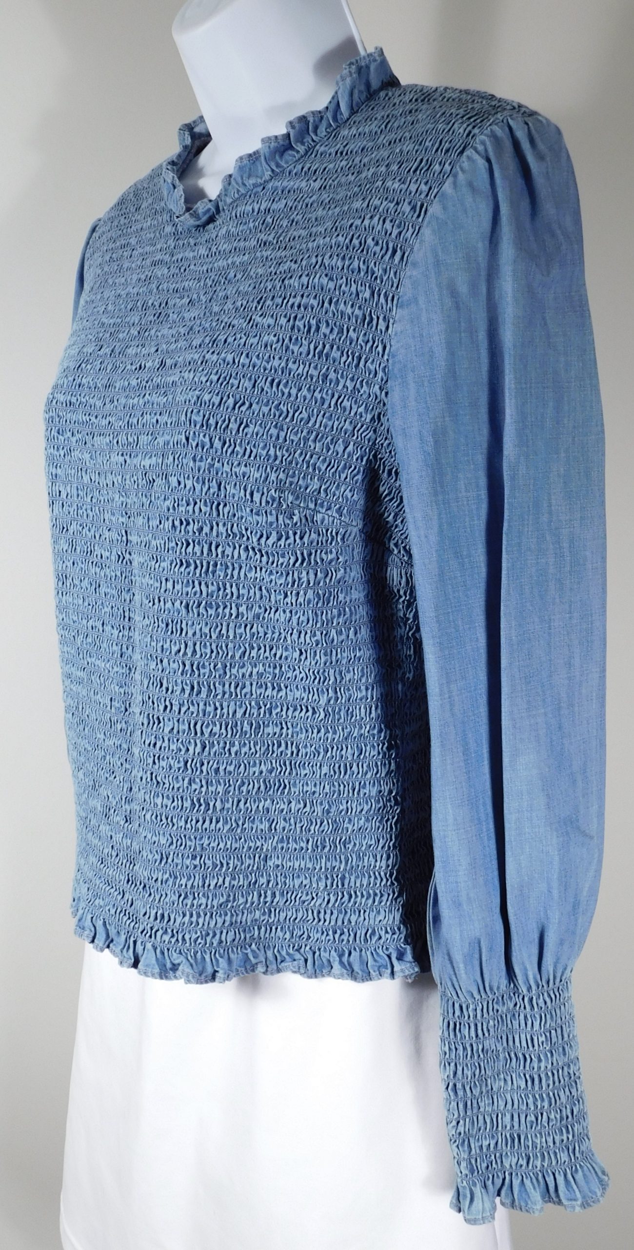 VERONICA BEARD Women’s Chambray Blue Idony Smocked High Neck Long Sleeve Top Blouse Sz 6 ($325)