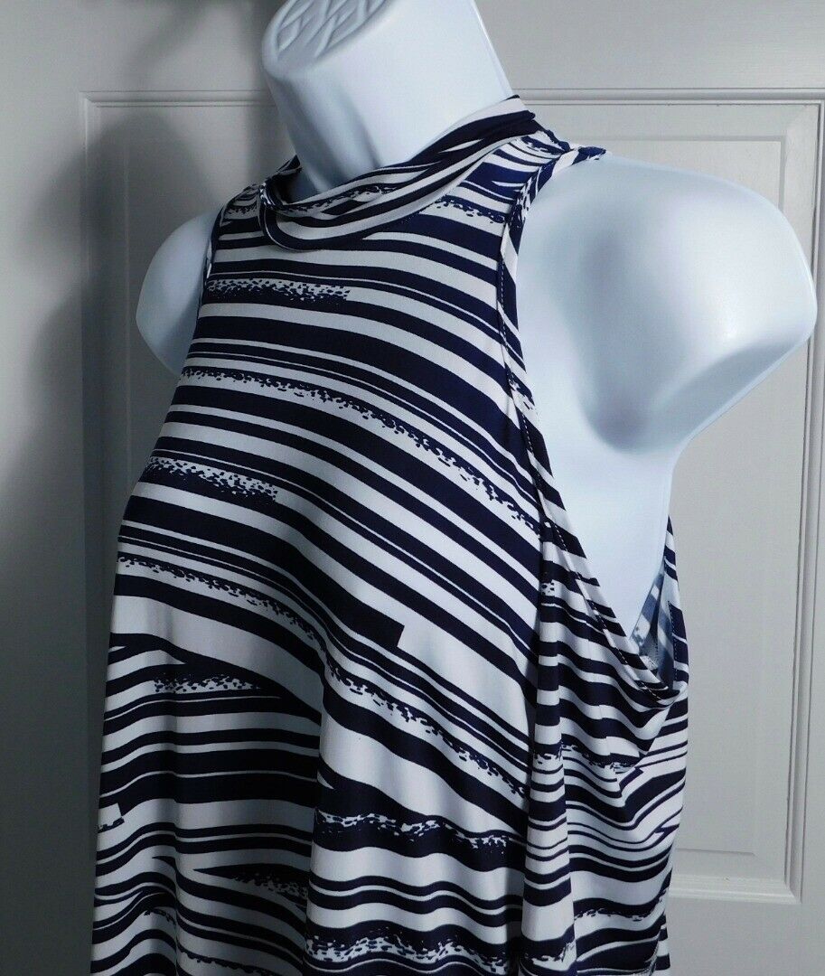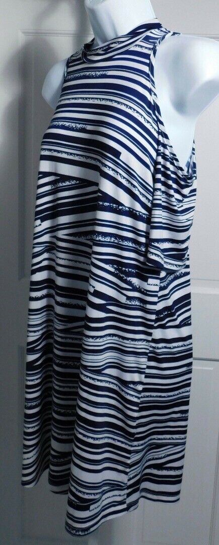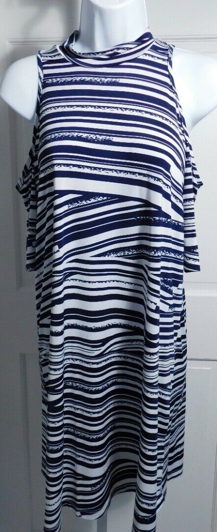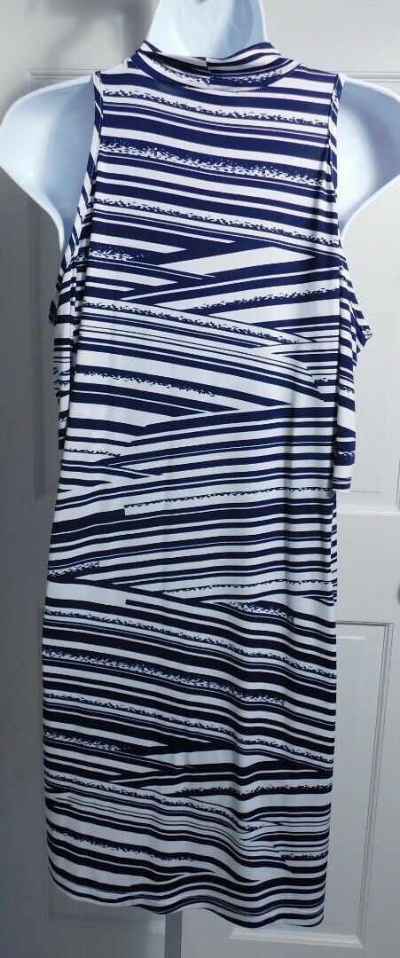 VERONICA M Women’s Blue & White High Neck Cold Shoulder Shift Dress Sz S