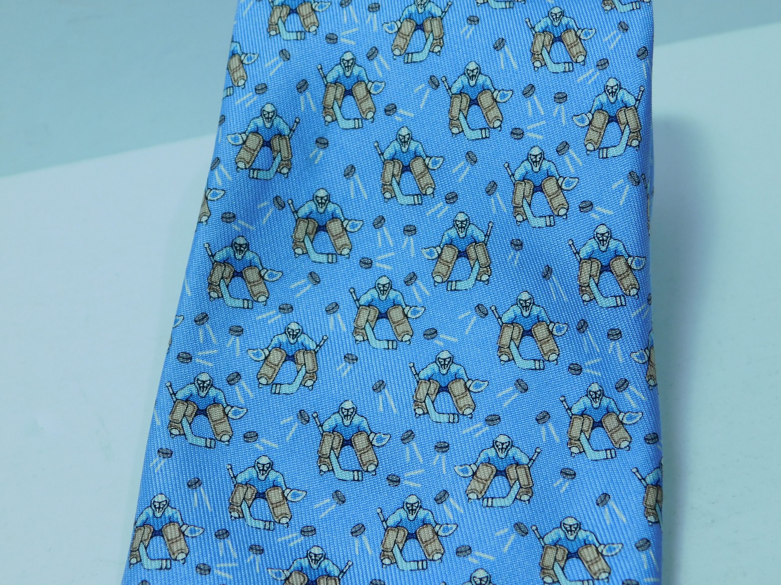 VINEYARD VINES Men’s Blue Hockey Goalie Silk Tie ($85)