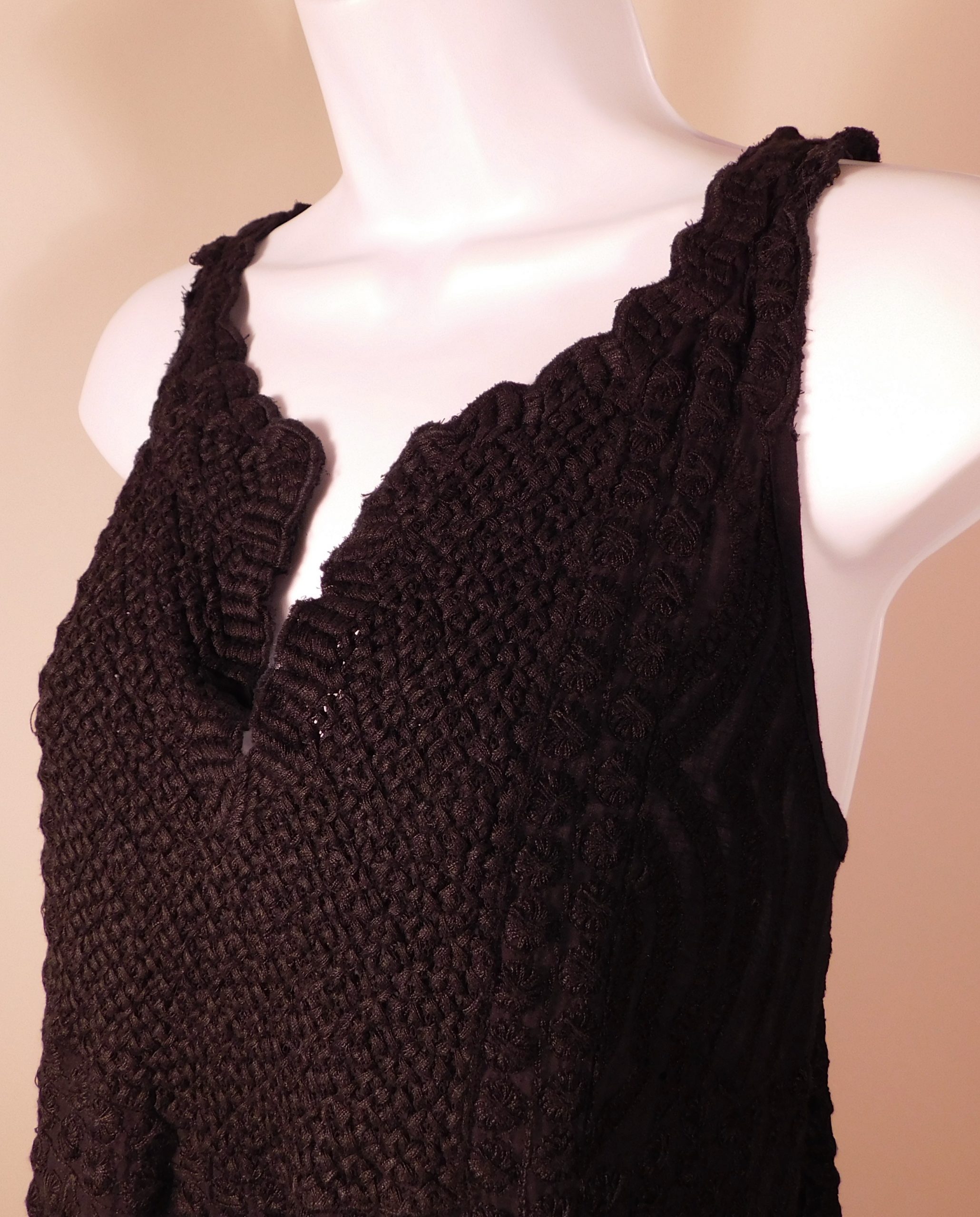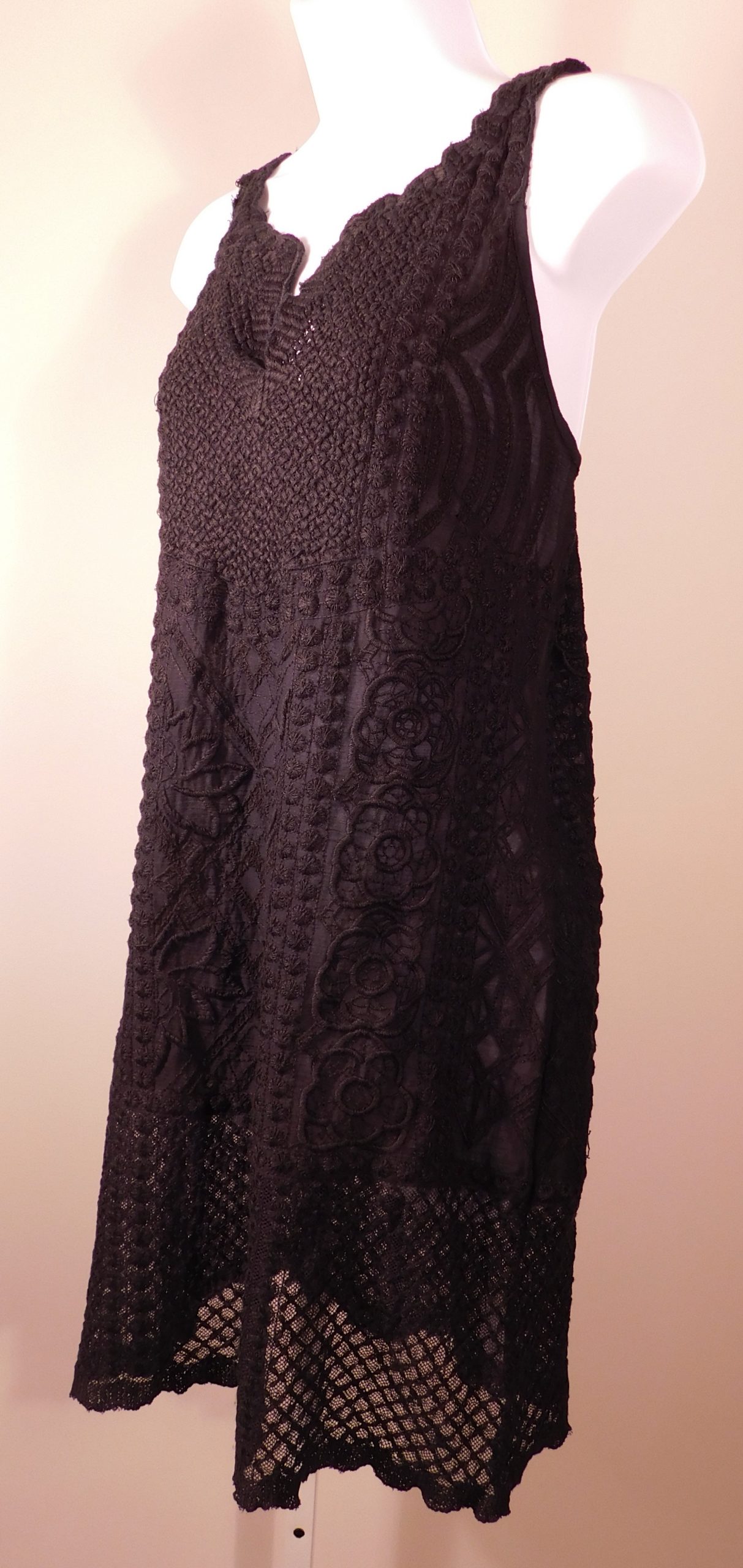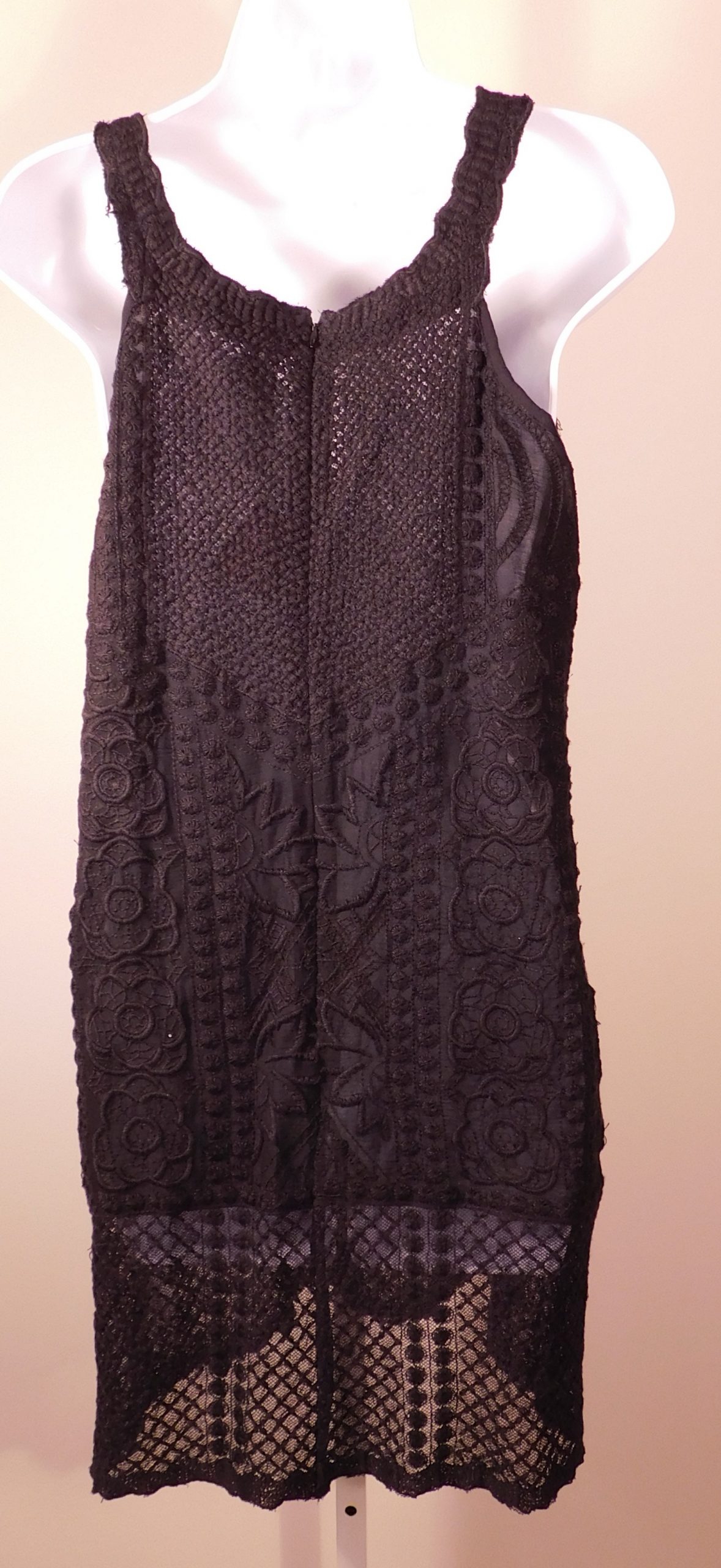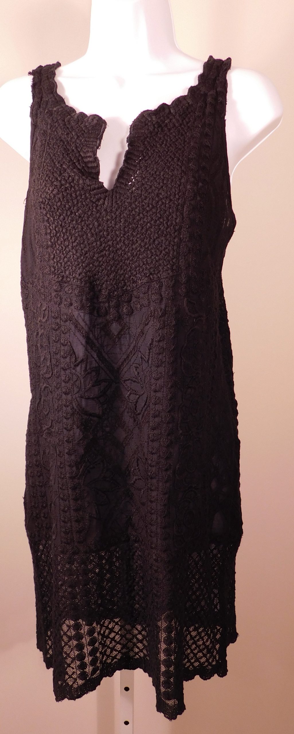 YOANA BARASCHI for ANTHROPOLOGIE Women’s Black Crochet Lace Sleeveless V-Neck Mini Dress M