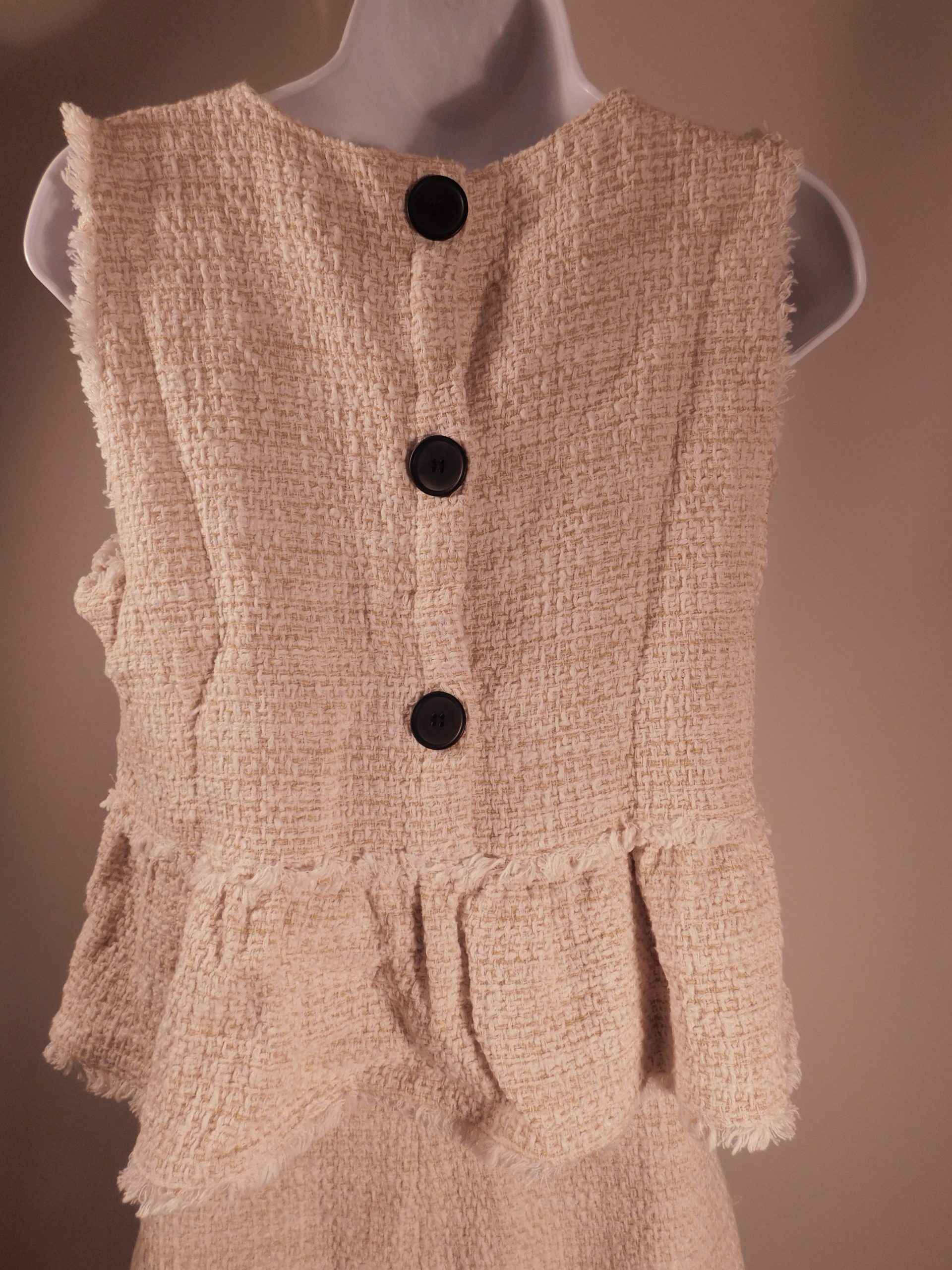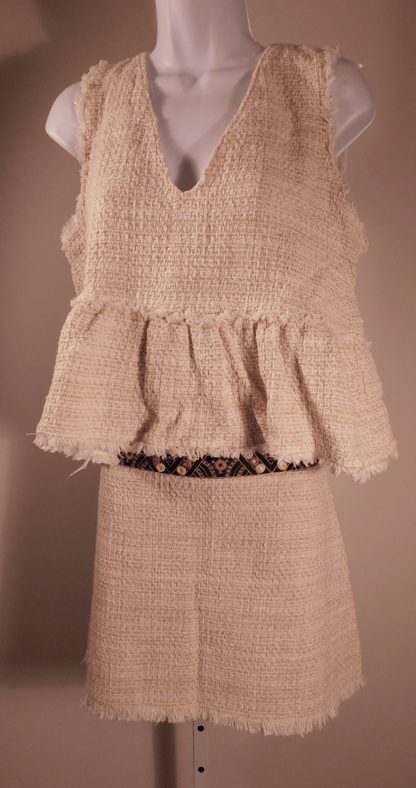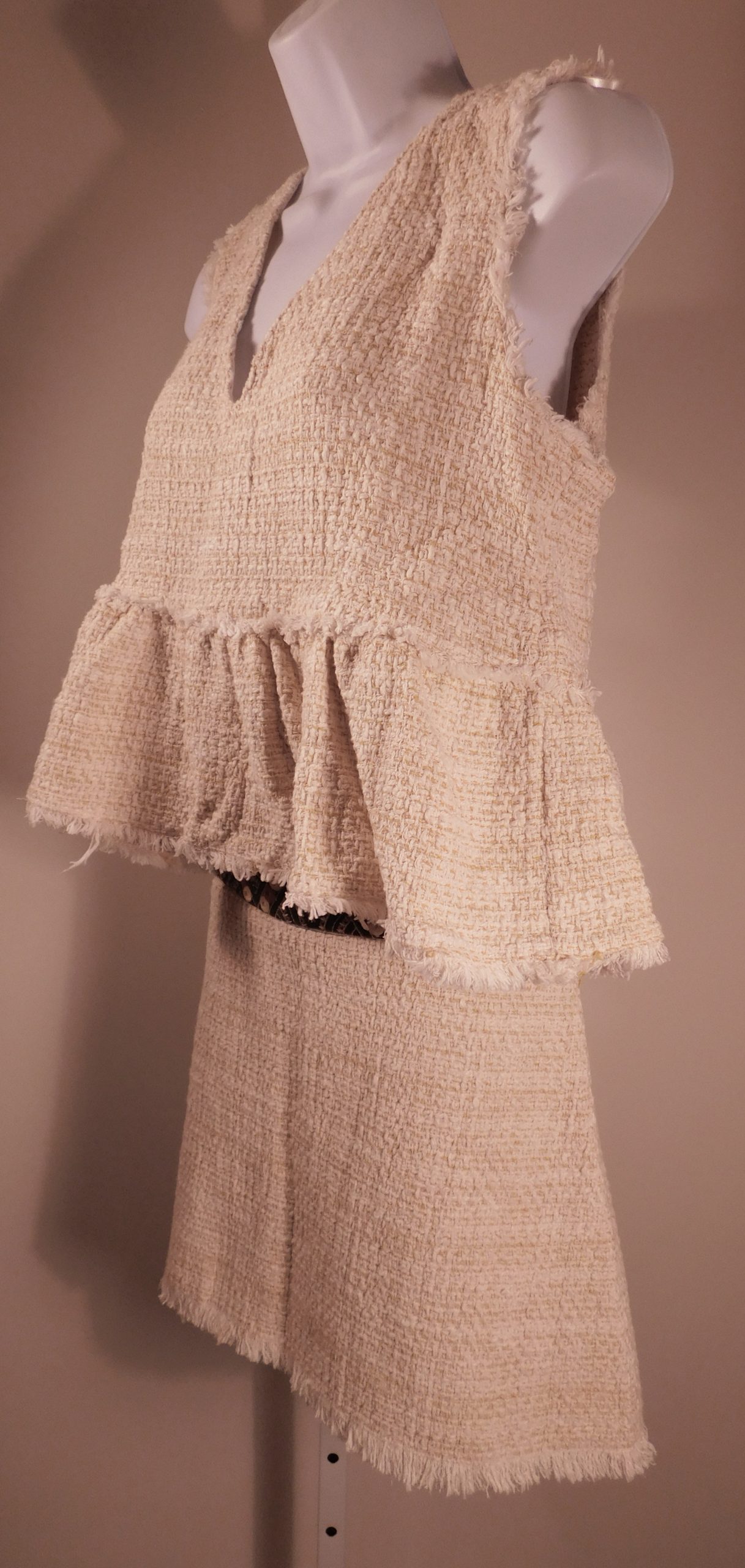 ZARA TRF COLLECTION Women’s Yellow Tweed V-Neck Sleeveless 2Pc Fringe Trim Skirt Dress Sz M