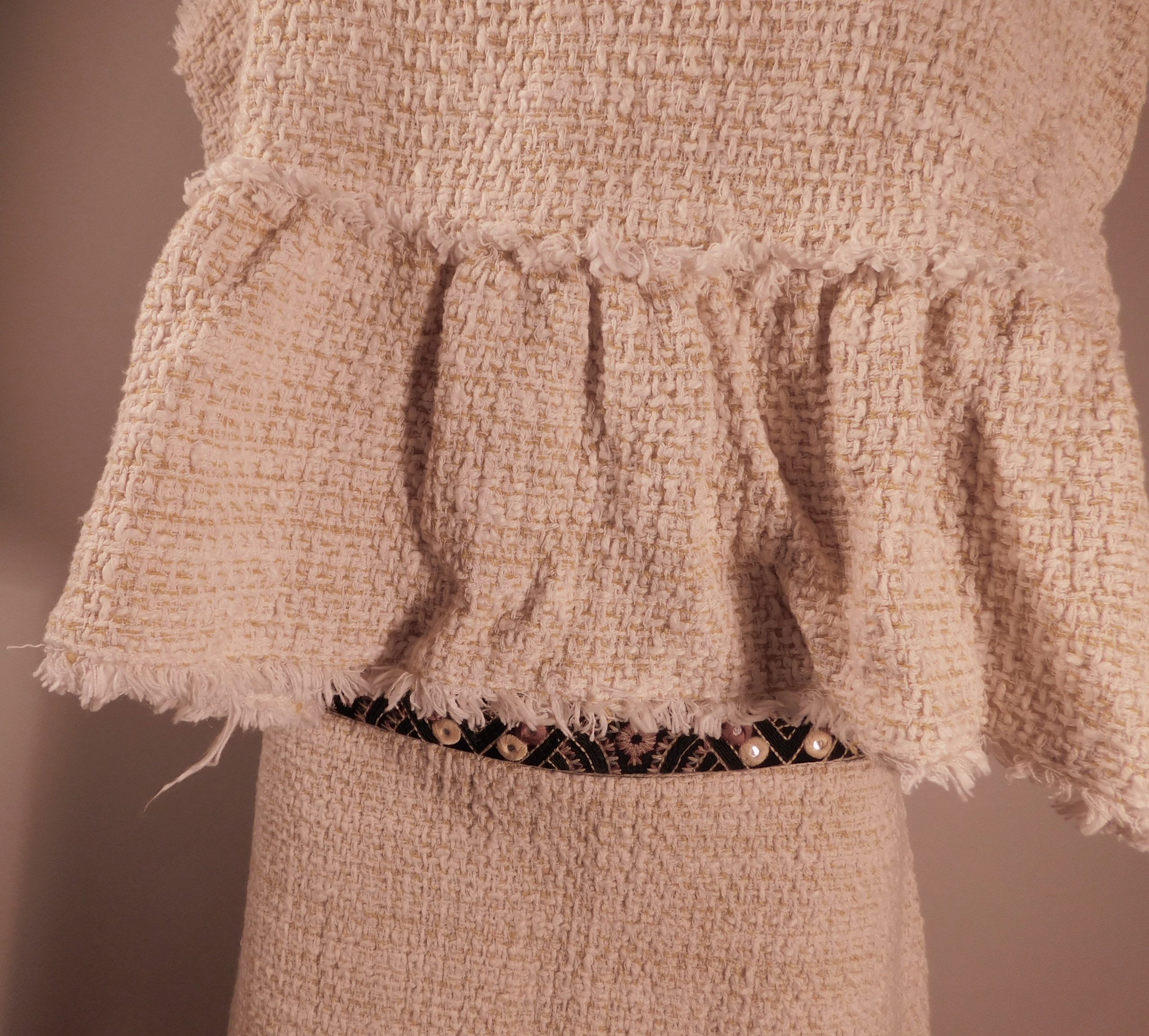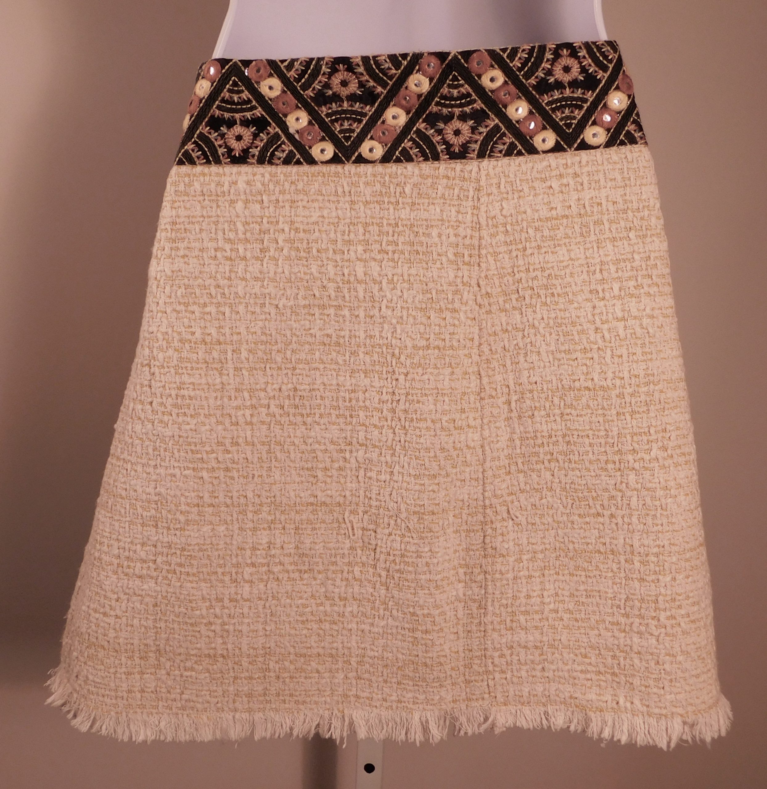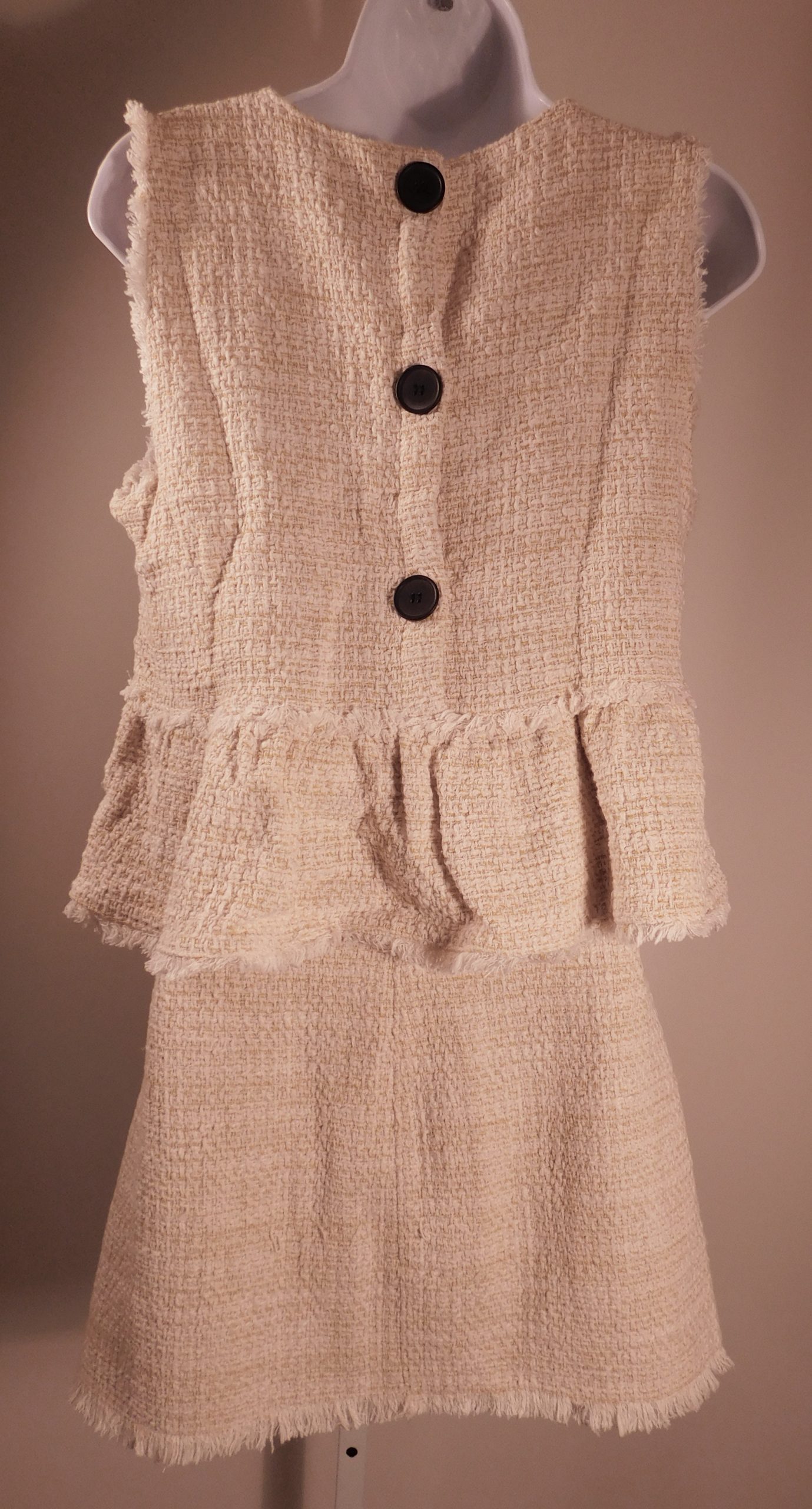 ZARA TRF COLLECTION Women’s Yellow Tweed V-Neck Sleeveless 2Pc Fringe Trim Skirt Dress Sz M